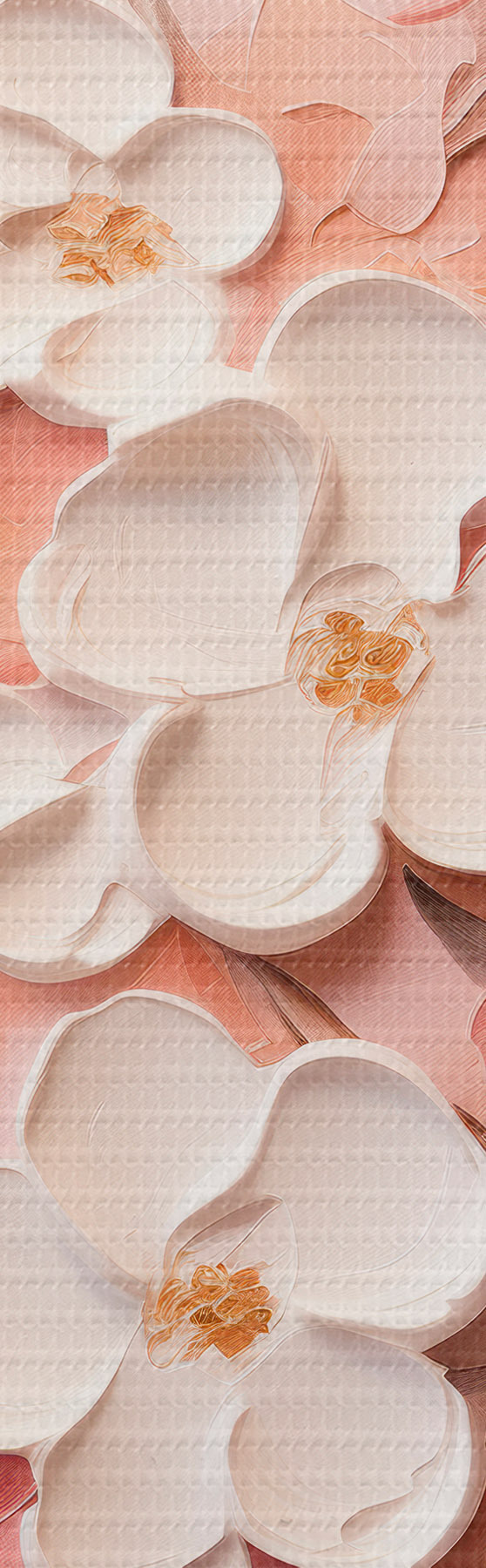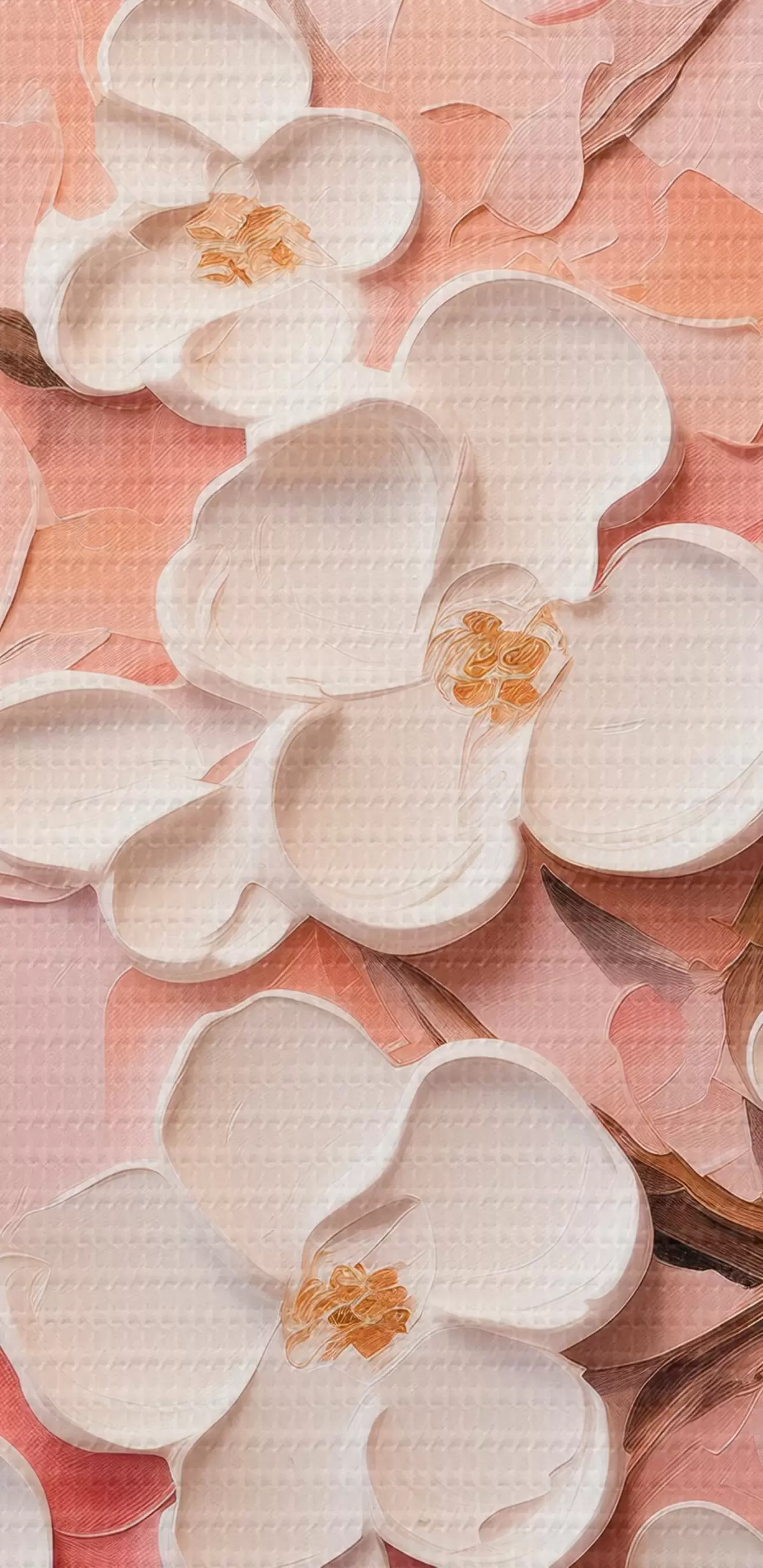 Schilderijen Bloeiende tak: reliëfcompositie in lichtroze tinten s45543
