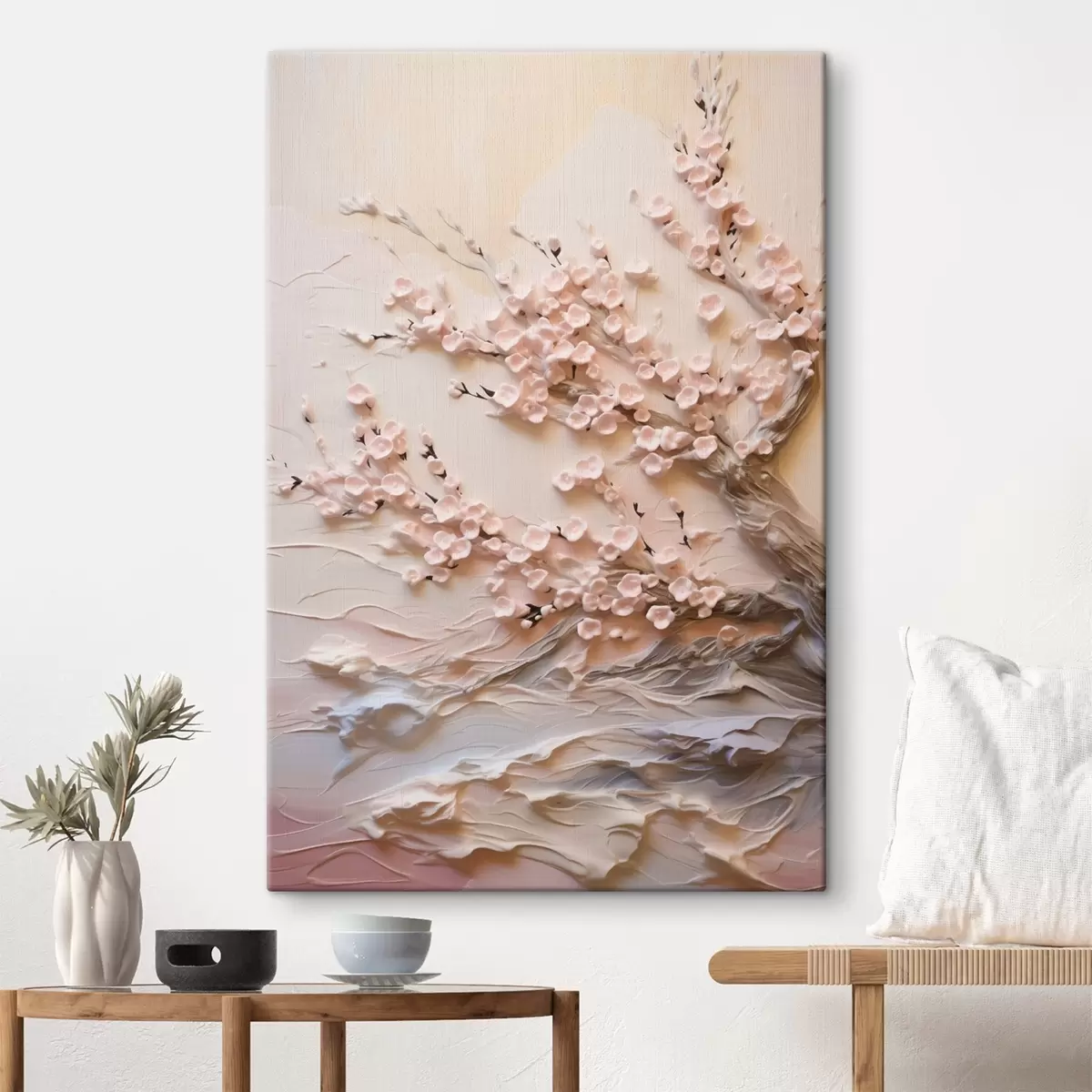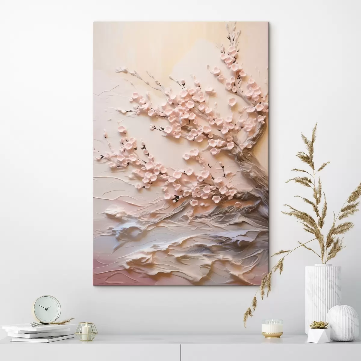 Schilderij Reliëfcompositie van sakura in pasteltinten Art. s45544