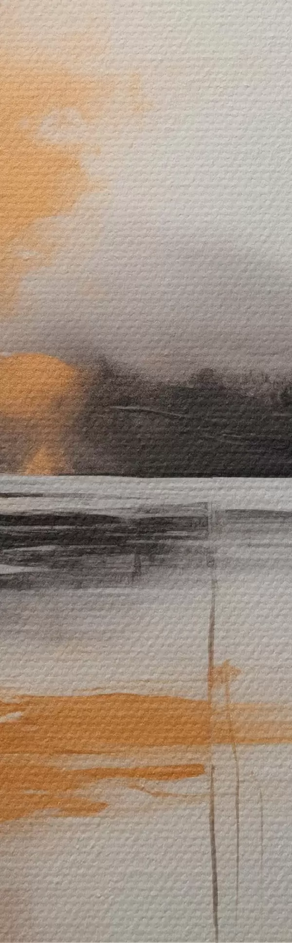 Schilderij Een abstract landschap met een meer, boom en gele mist, het water weerspiegelt en bewolkte lucht Art. s45575