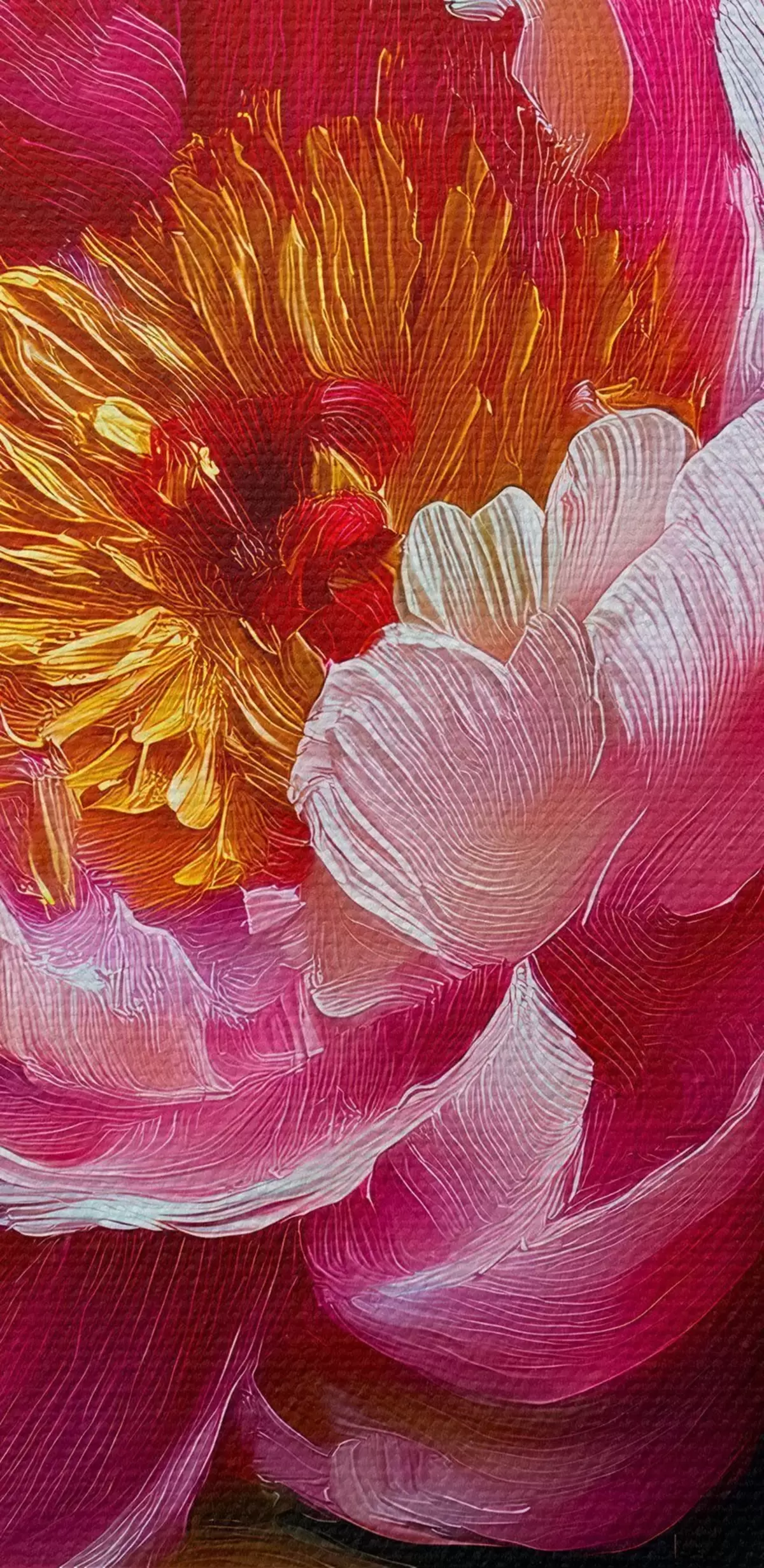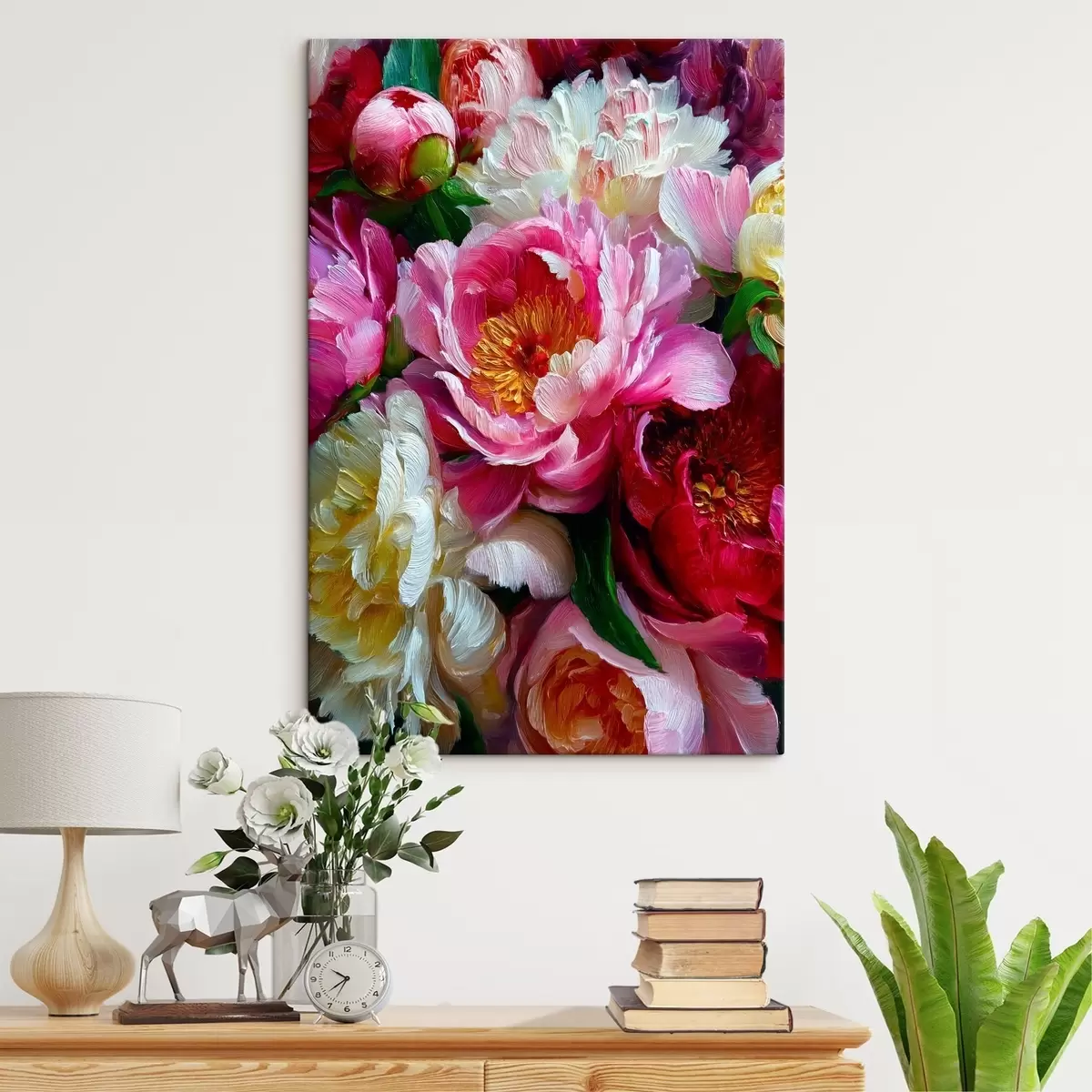 Schilderij Weelderige pioenrozen in impasto techniek Art. s45595