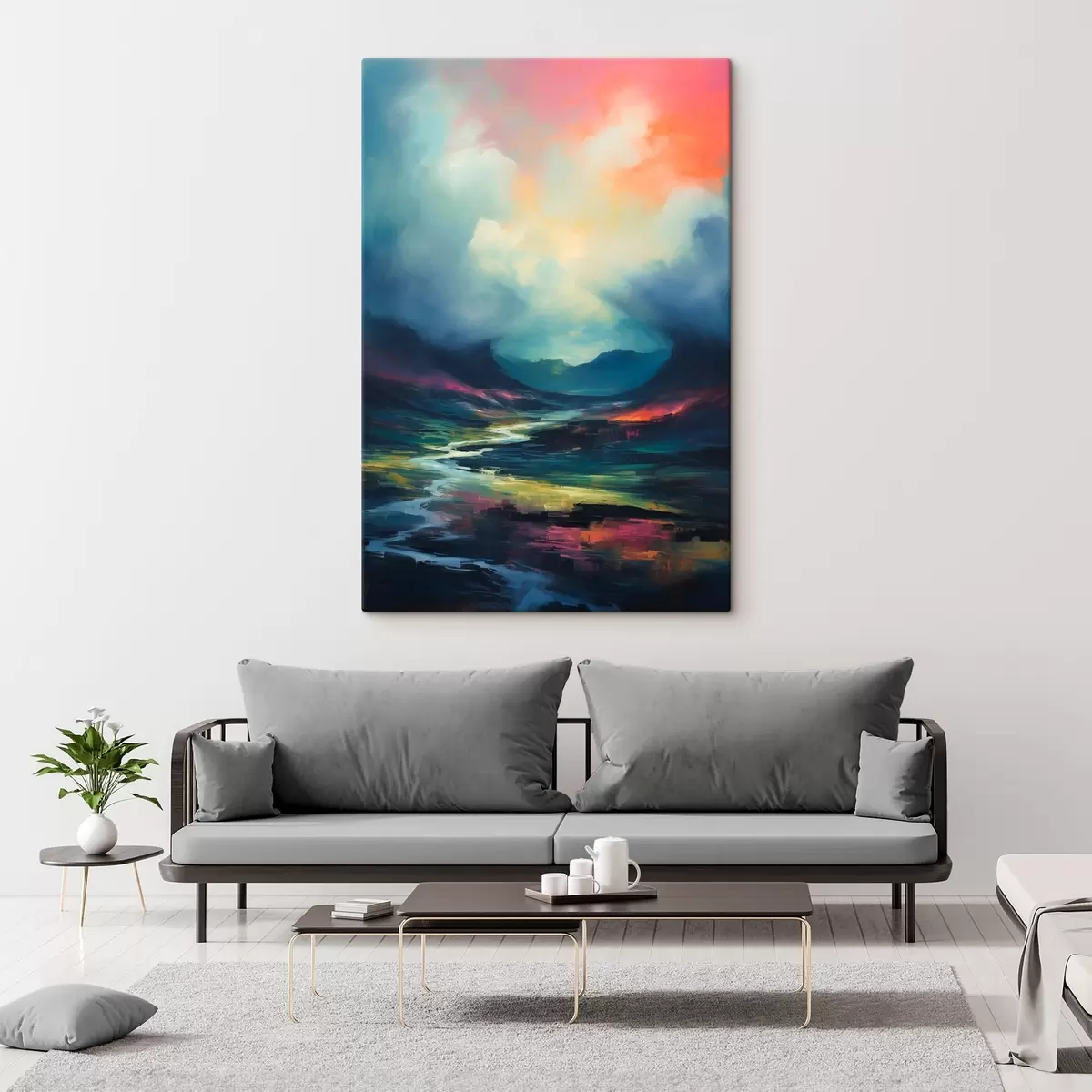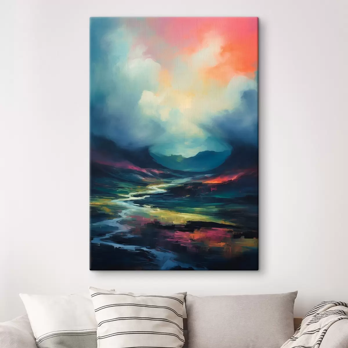 Schilderij Abstract landschap met een rivier en bergen Art. s45627