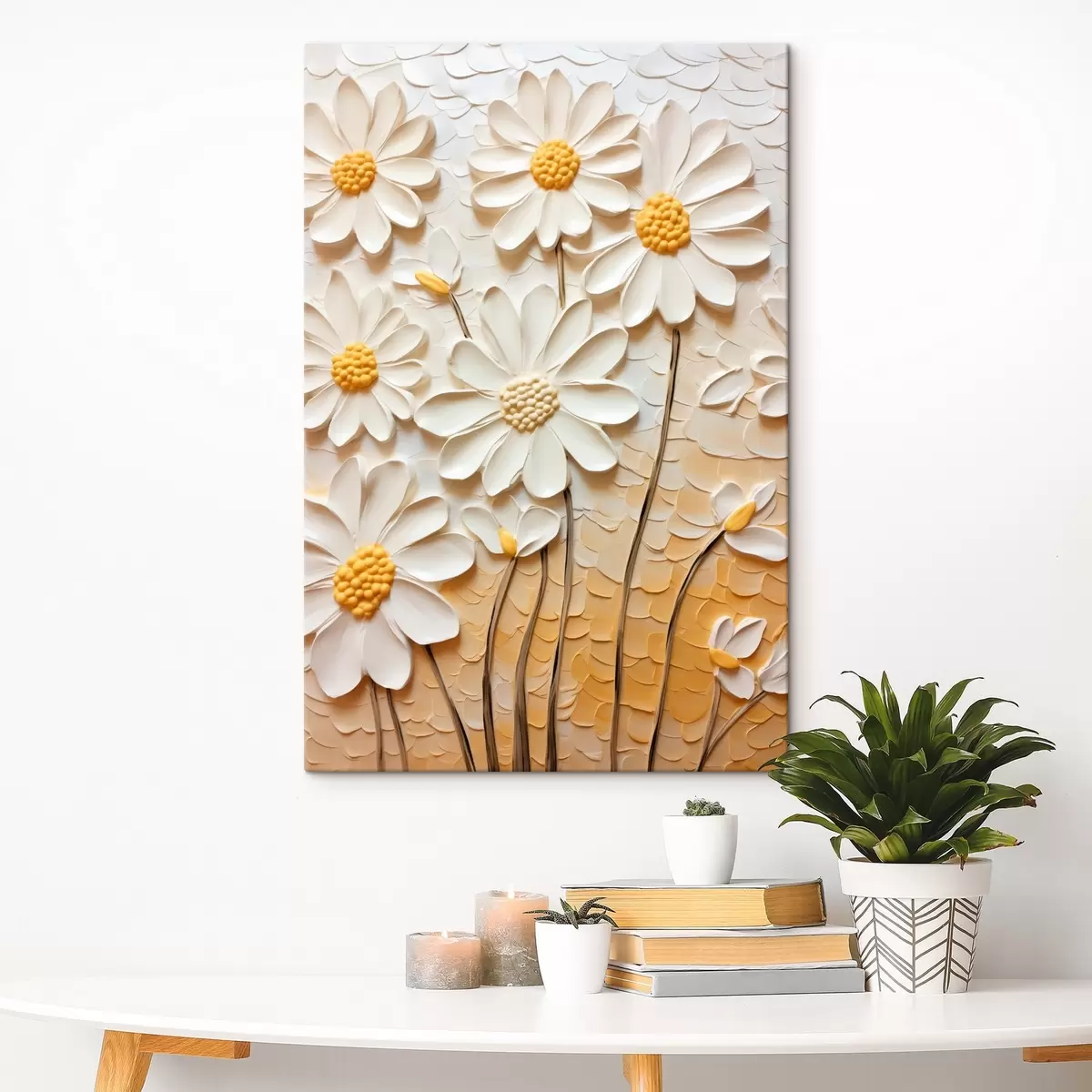 Schilderij Madeliefjes in impasto stijl: witte bloemblaadjes Art. s45647