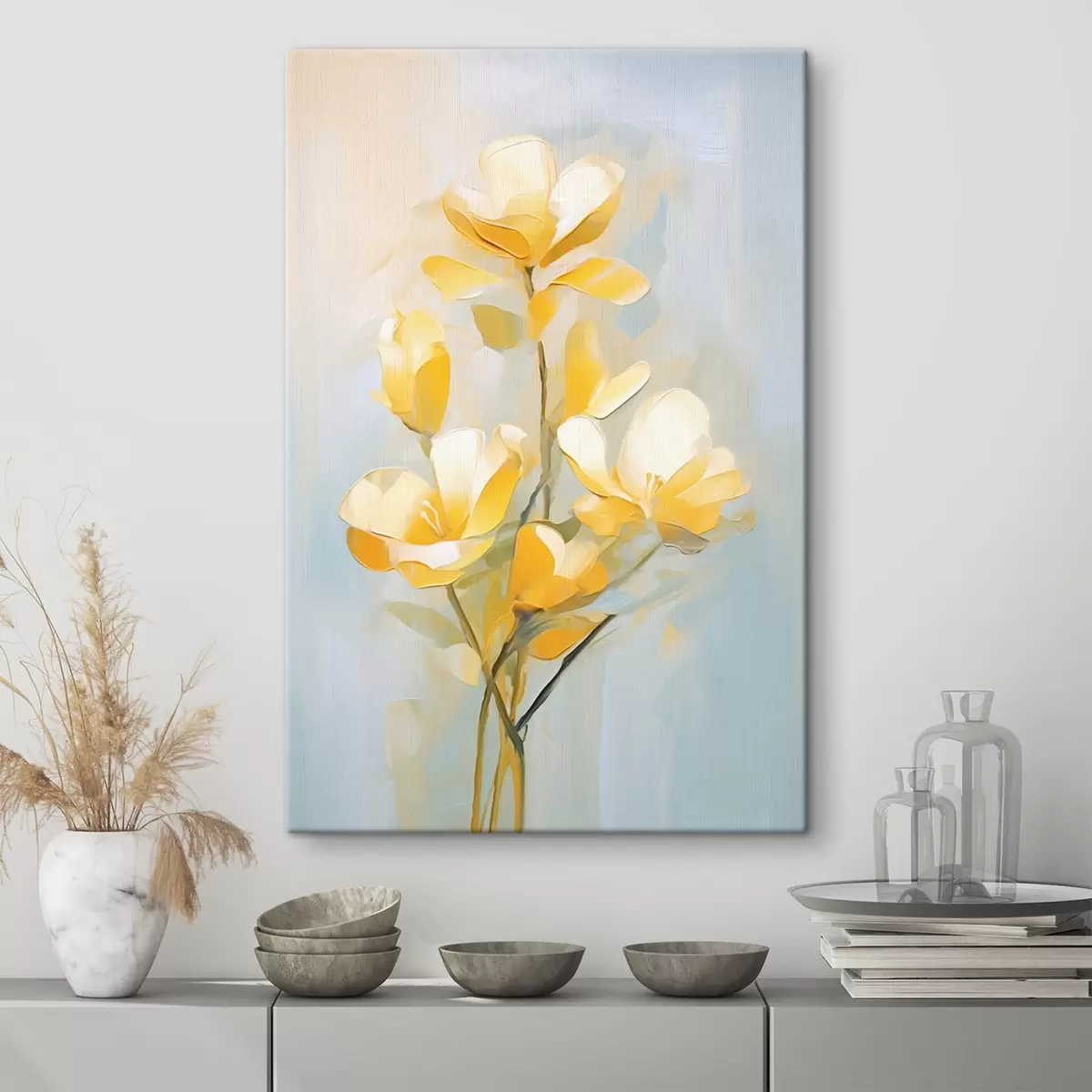 Schilderij Delicate gele bloemen in olieverfschilderijstijl Art. s45651