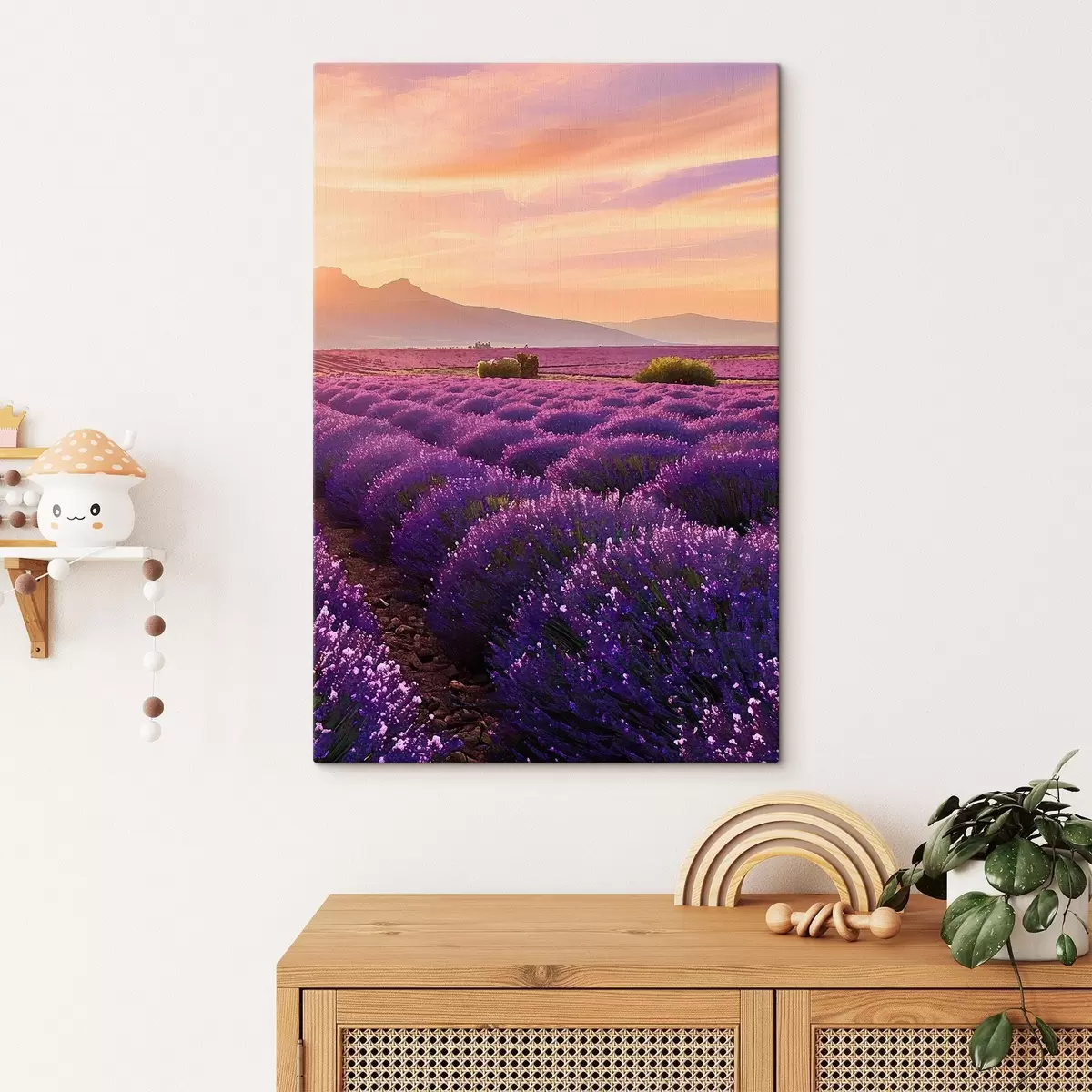 Schilderij Lavendel tegen de achtergrond van een zonsondergang in de bergen Art. s45664
