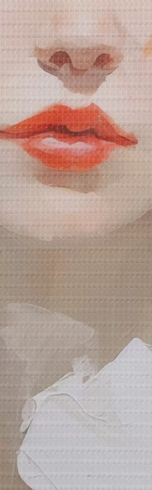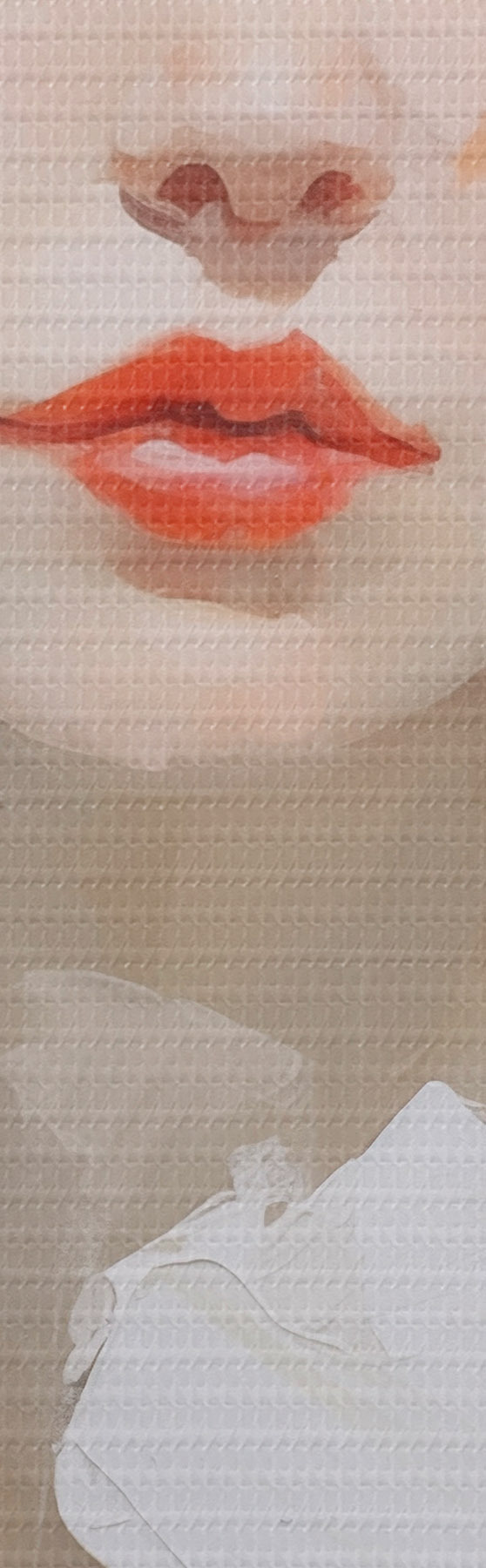 De fijne weving van draden op dit doek lijkt op het oppervlak van professionele schildersdoeken.