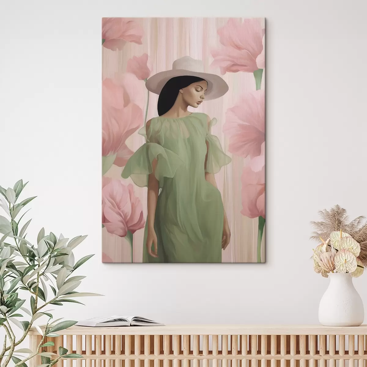 Schilderij Meisje met hoed onder bloemen Art. s45678