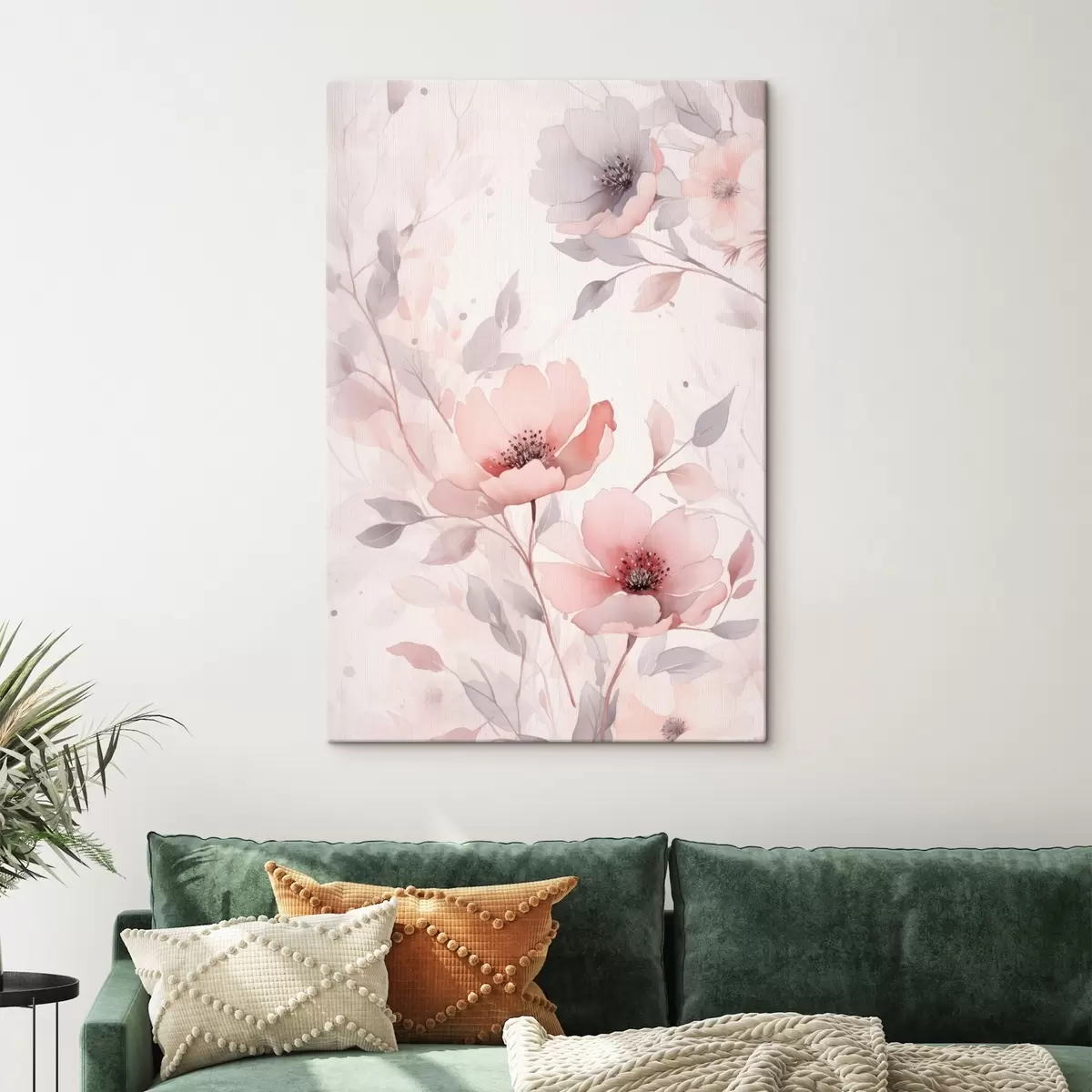 Schilderij Delicate roze-grijze bloemen met aquareleffect Art. s45702