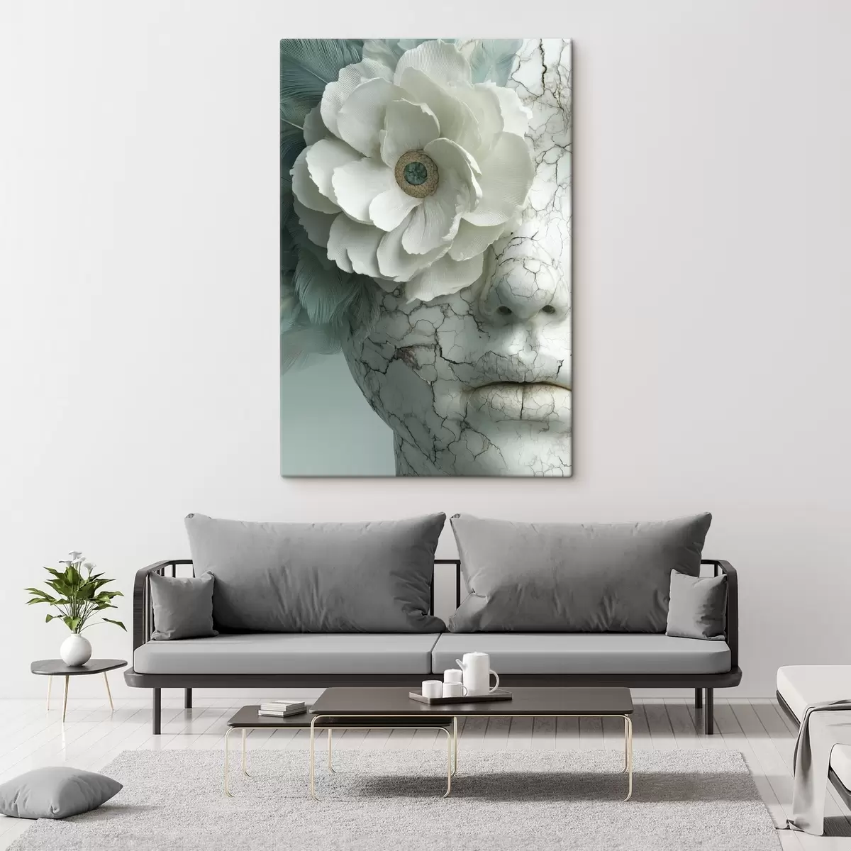 Schilderij marmeren gezicht van een meisje met een bloem Art. s45709