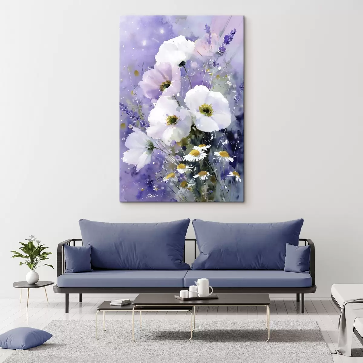 Schilderij aquarelboeket in lila en witte tinten Art. s45719