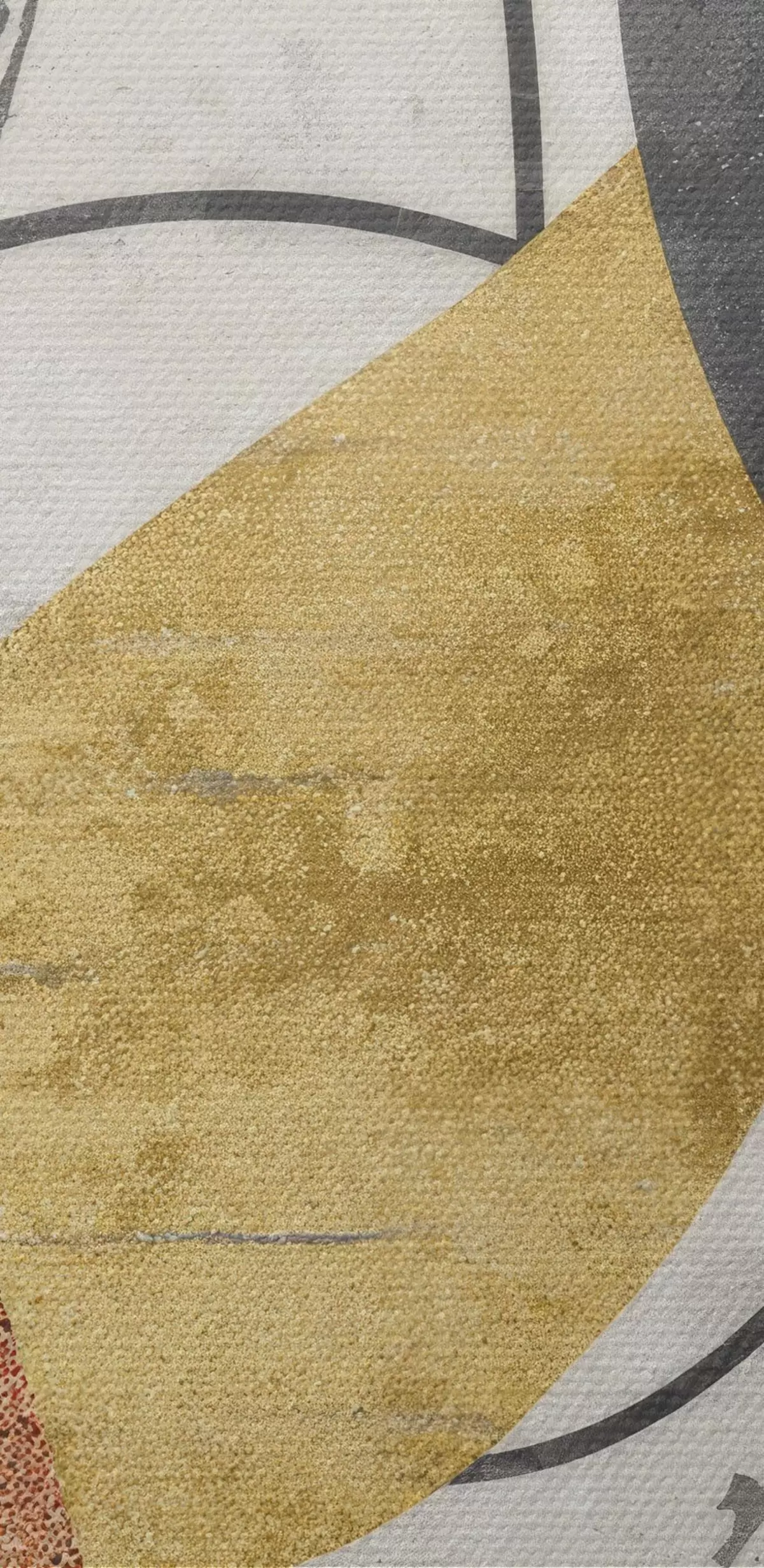 Het schilderij kan direct na ontvangst worden opgehangen. Het schilderij wordt opgespannen op een 2 cm breed houten spieraam.