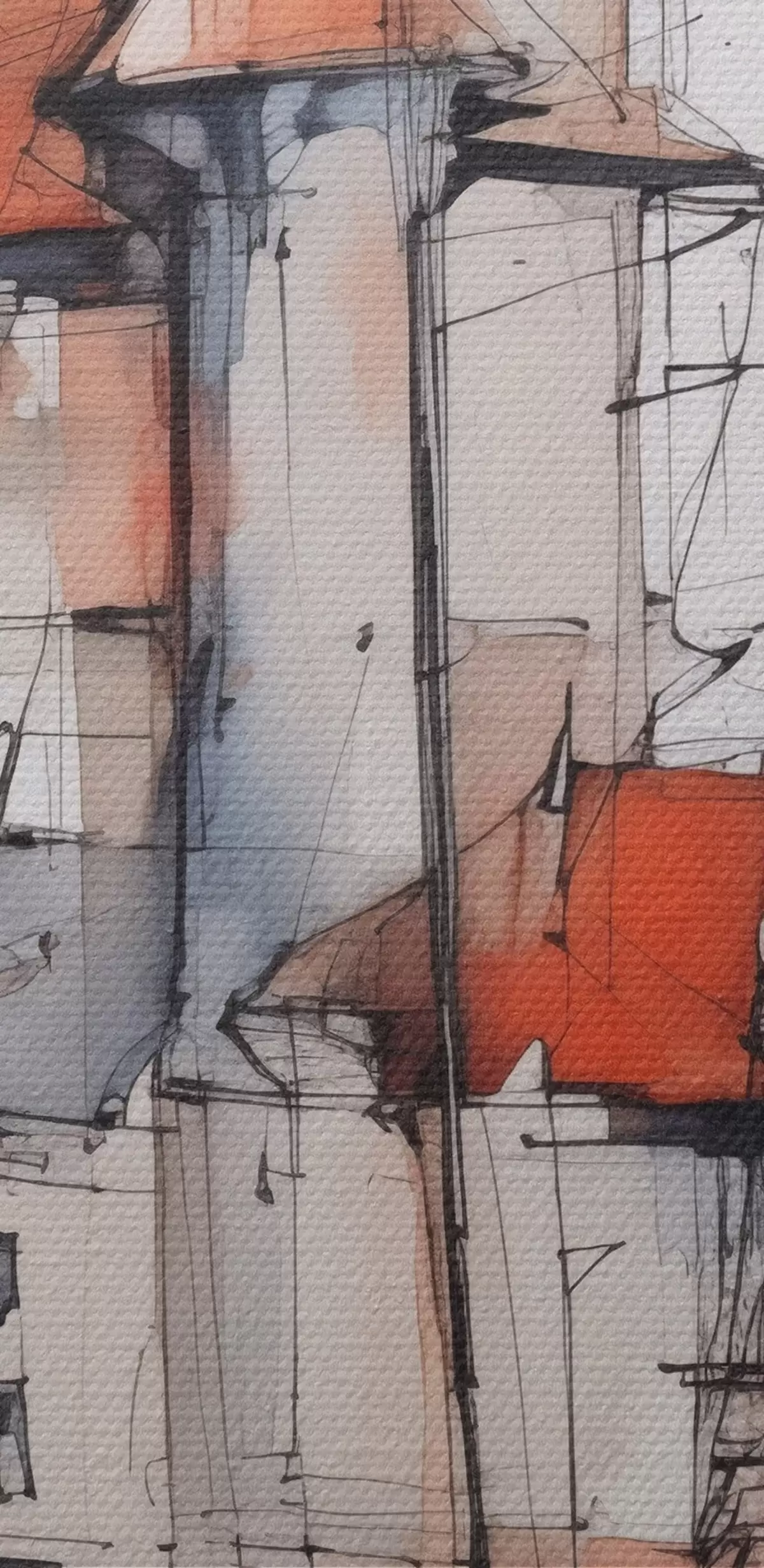 Schilderij Huizen imitatie schets en aquarel Art. s45764