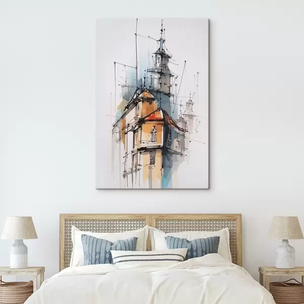 Schilderij Huizen imitatie schets en aquarel Art. s45765