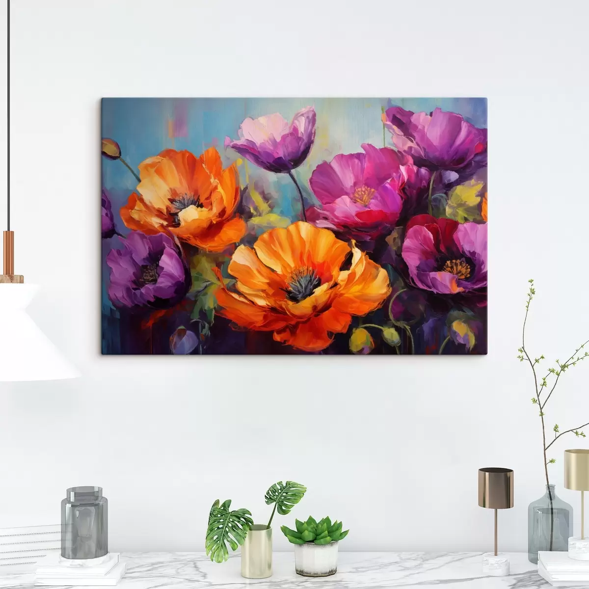 Schilderij Heldere klaprozen in paarse en oranje tinten Art. s45804