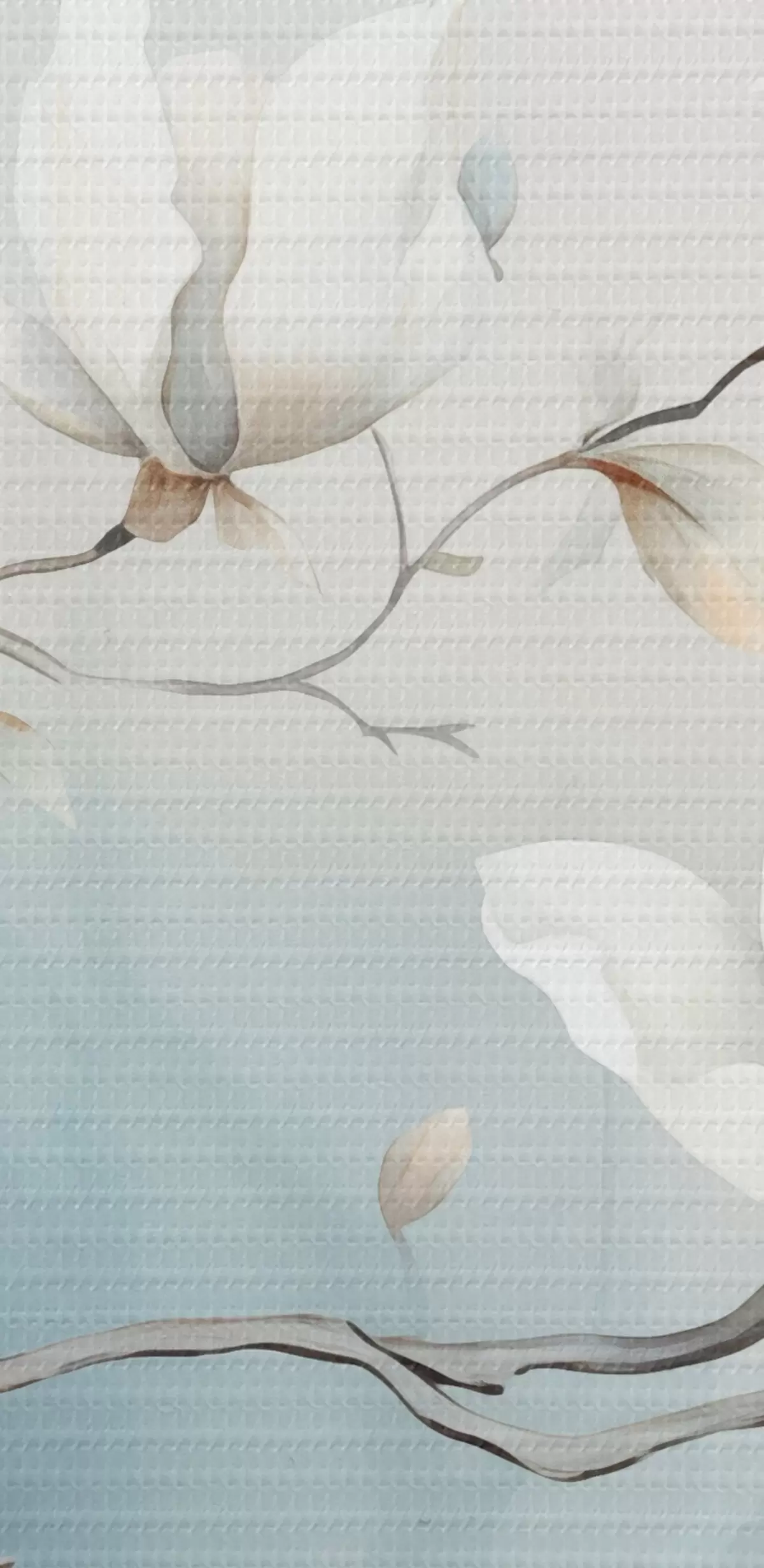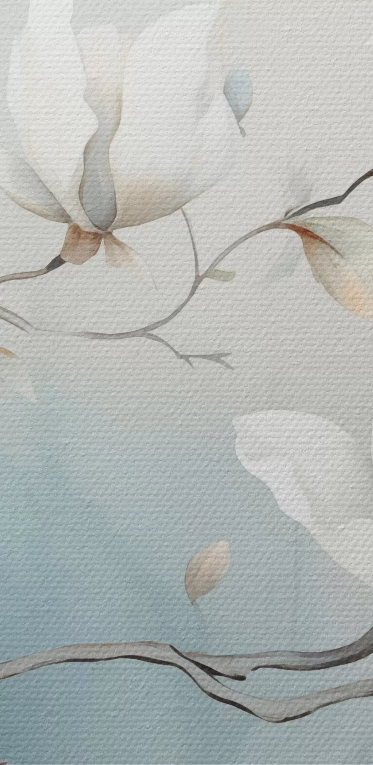 Schilderij Magnoliatakken met witte bloemen op een delicate achtergrond Art. s45806