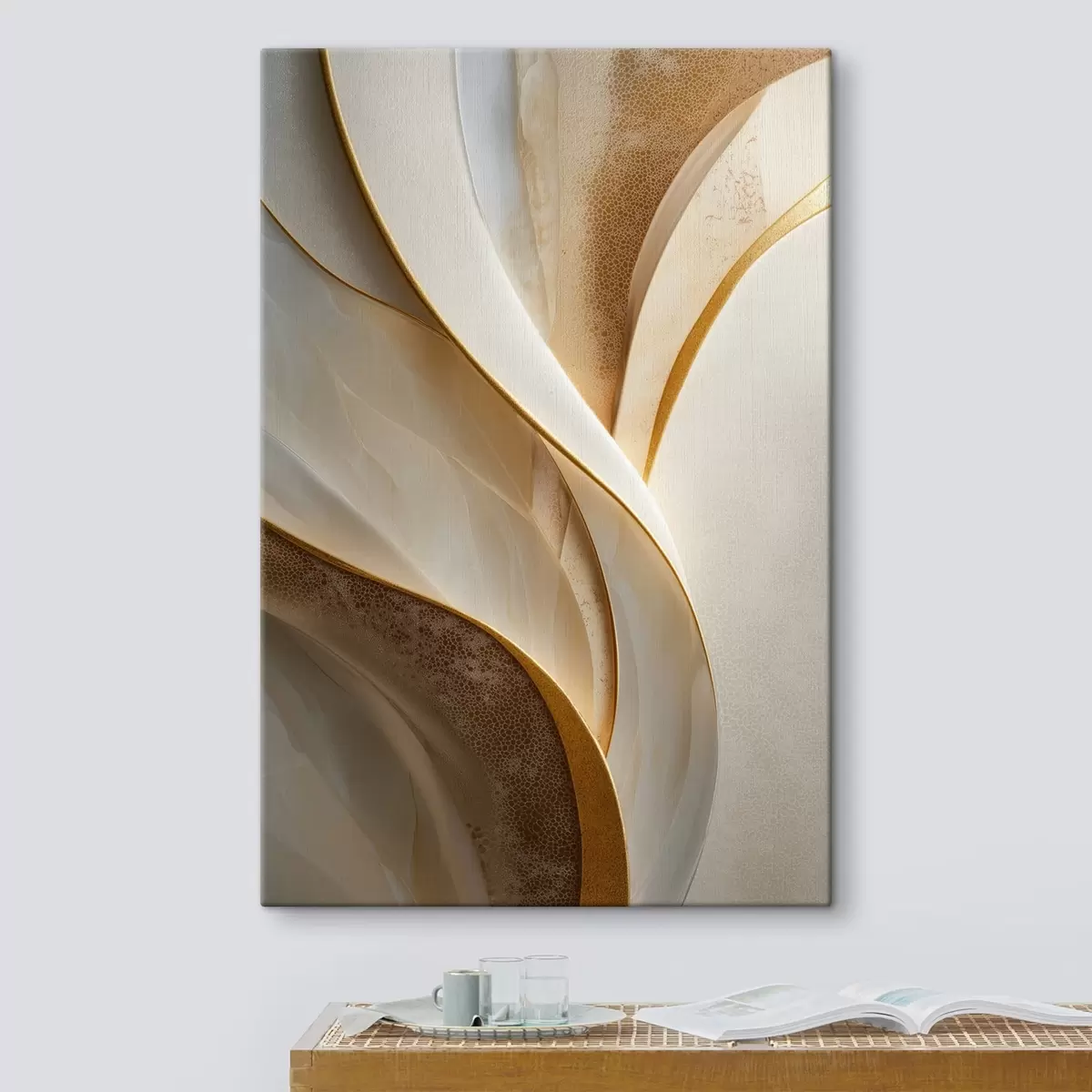 Schilderij Abstracte rondingen met geeloranje en beige accenten Art. s45807