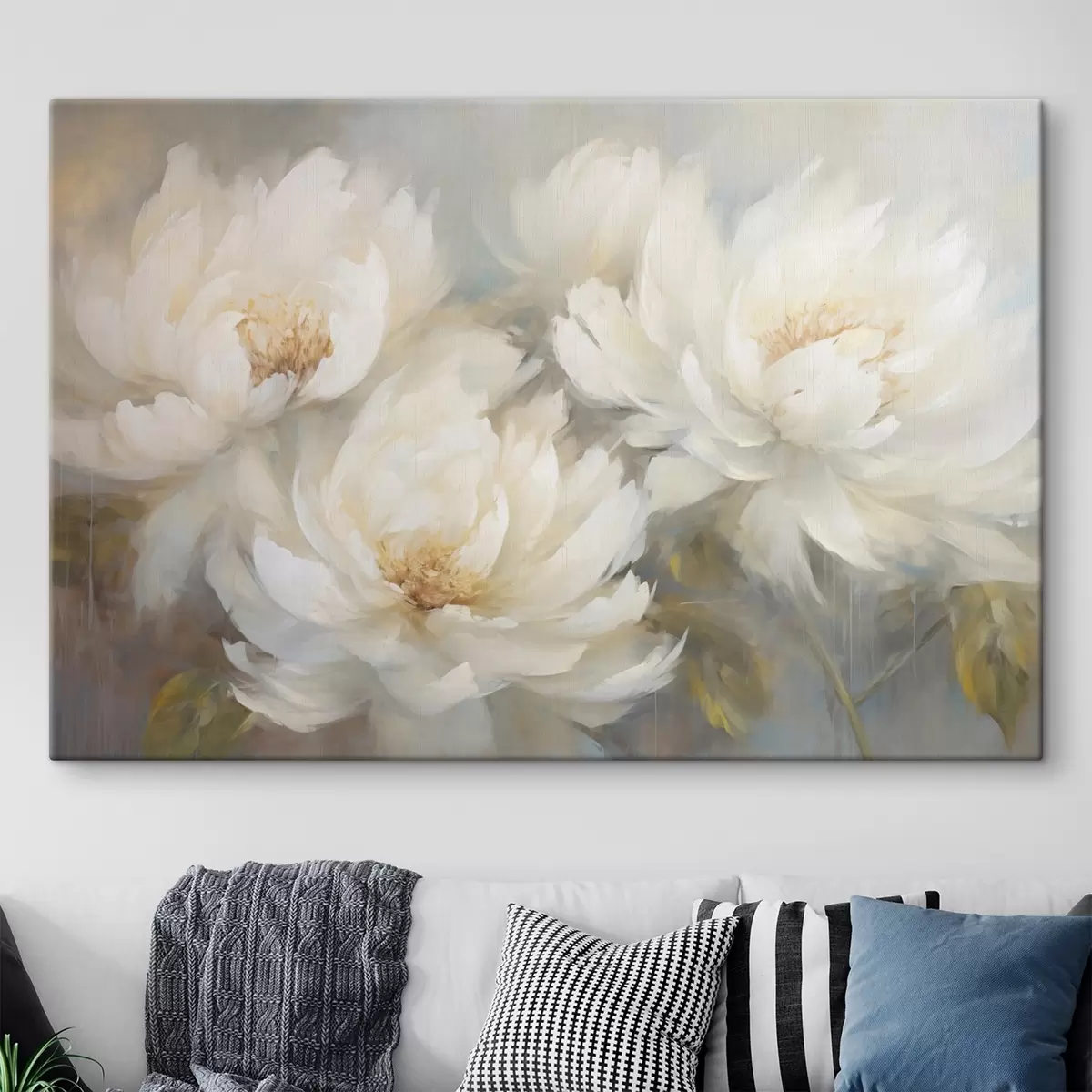 Schilderij Drie weelderige witte pioenrozen op een delicate achtergrond Art. s45808