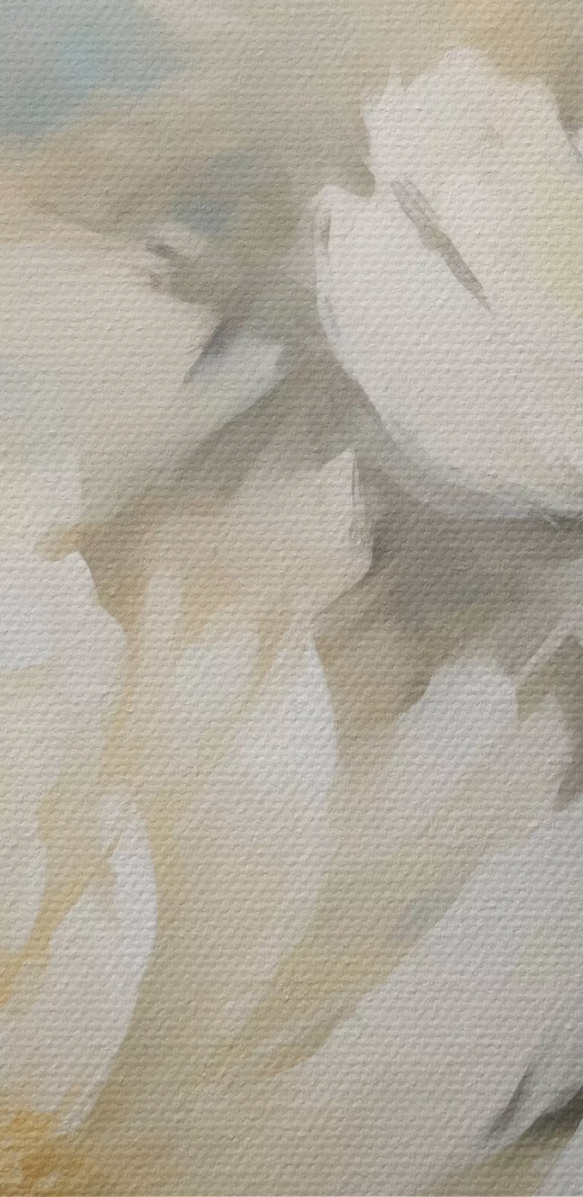 Het schilderij kan direct na ontvangst worden opgehangen. Het schilderij wordt opgespannen op een 2 cm breed houten spieraam.