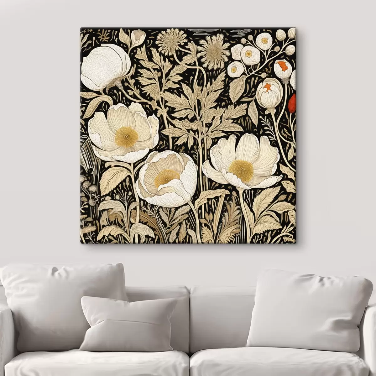 Schilderijen Crèmekleurige bloemen en grassen op een zwarte achtergrond s45816