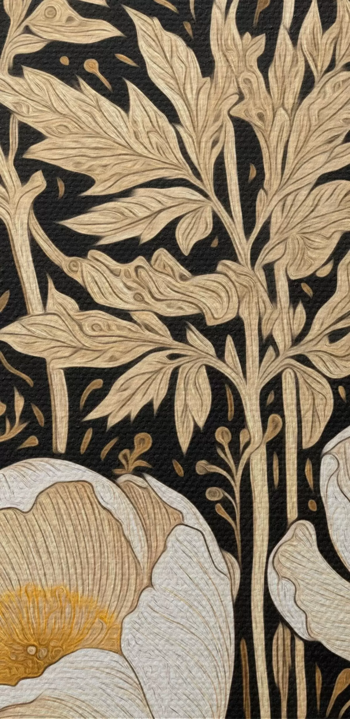 Schilderij Crèmekleurige bloemen en grassen op een zwarte achtergrond Art. s45816