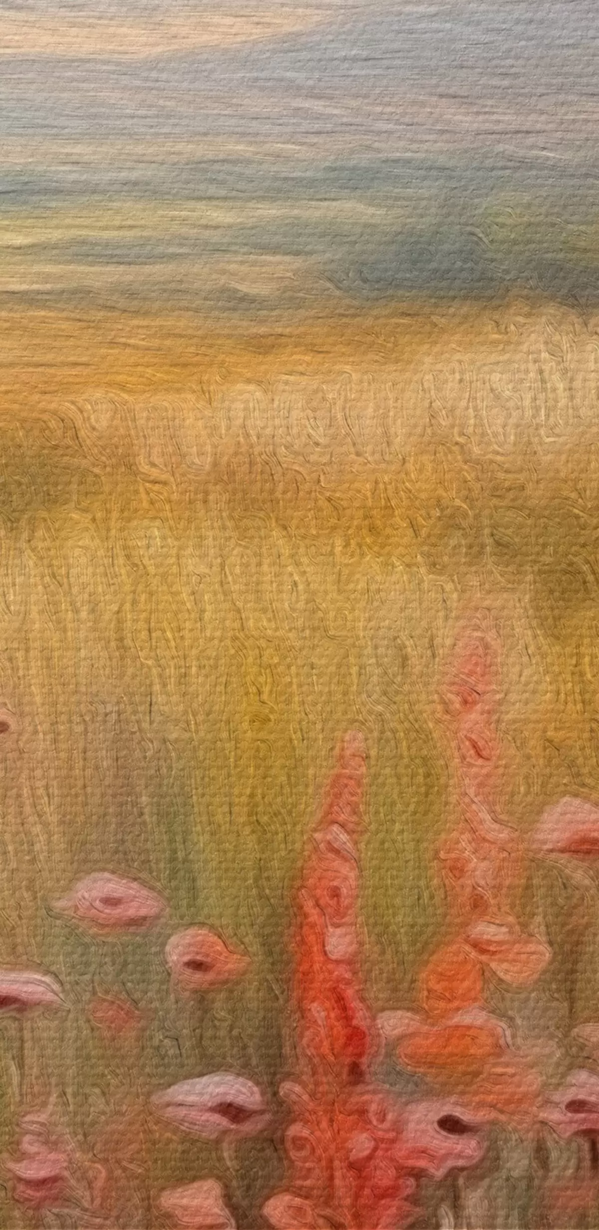 Schilderij Landschap met bloemen bij zonsondergang Art. s45818