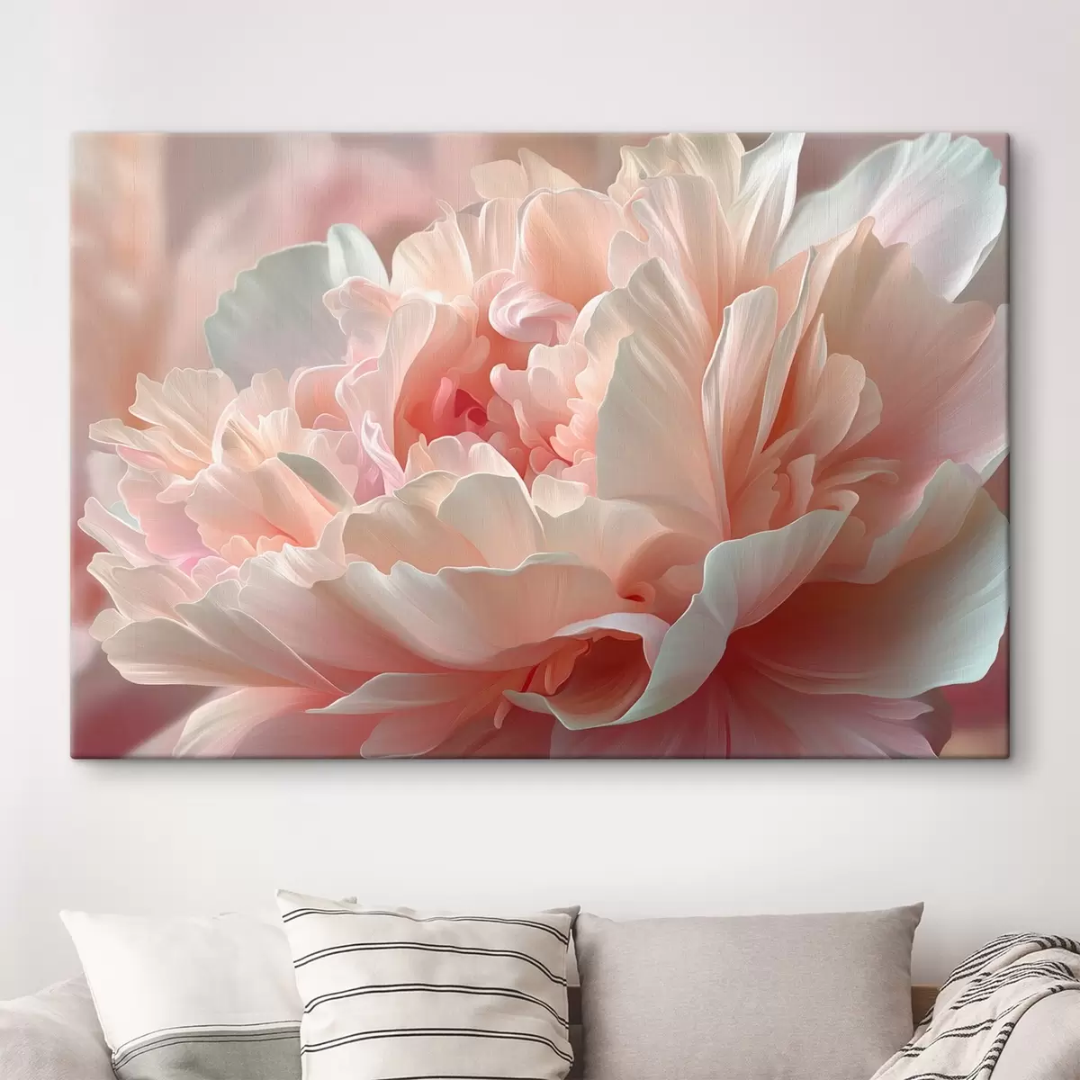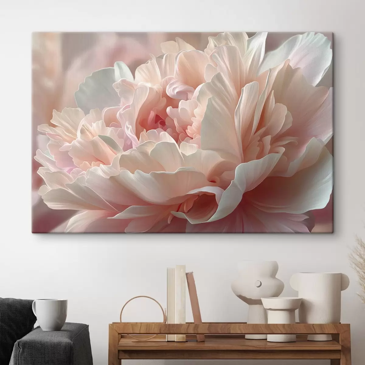 Schilderij Bloeiende pioenroos in roze en beige tinten Art. s45825