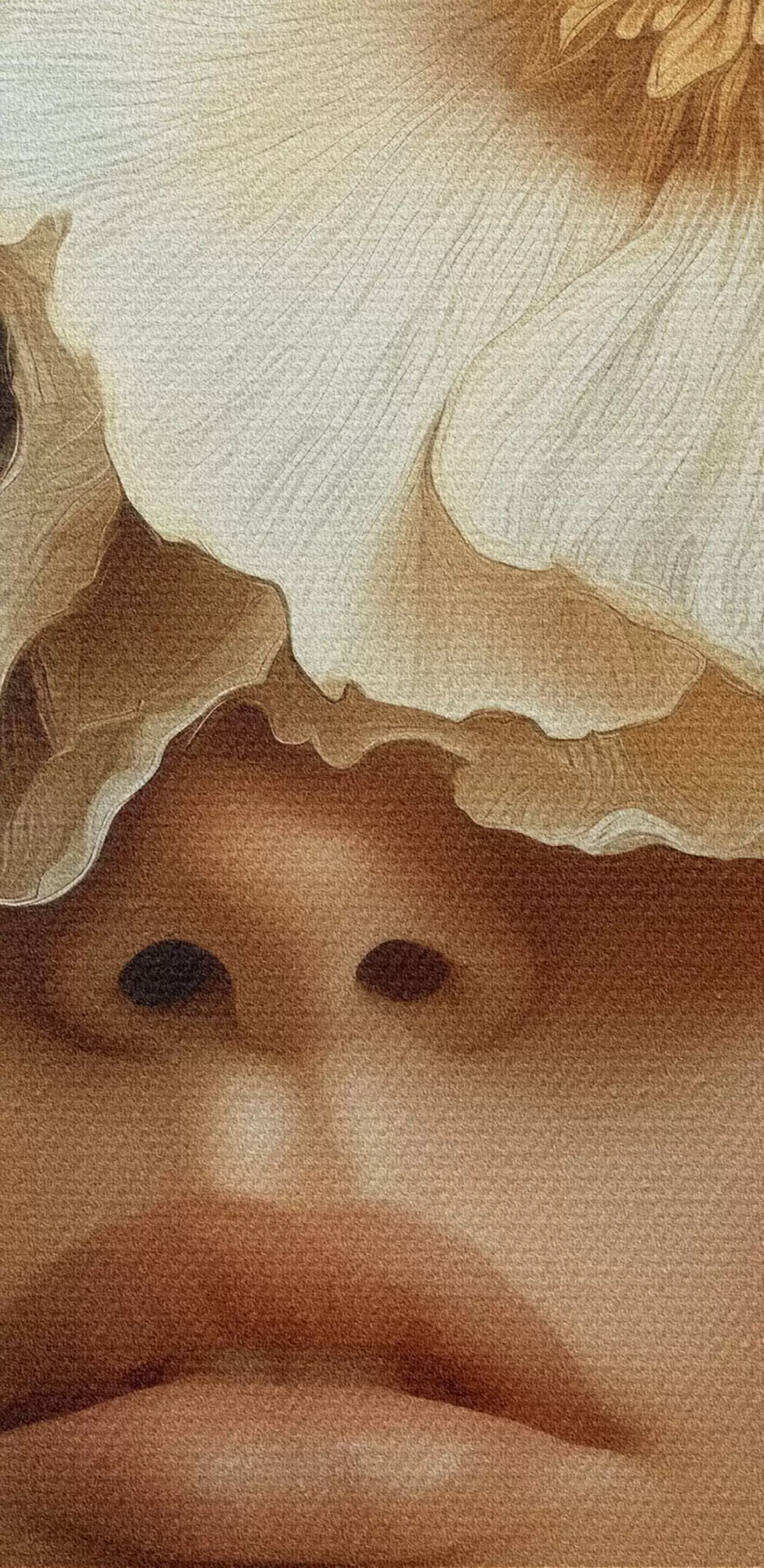 Schilderij Portret met beige bloemen die de ogen bedekken Art. s45870