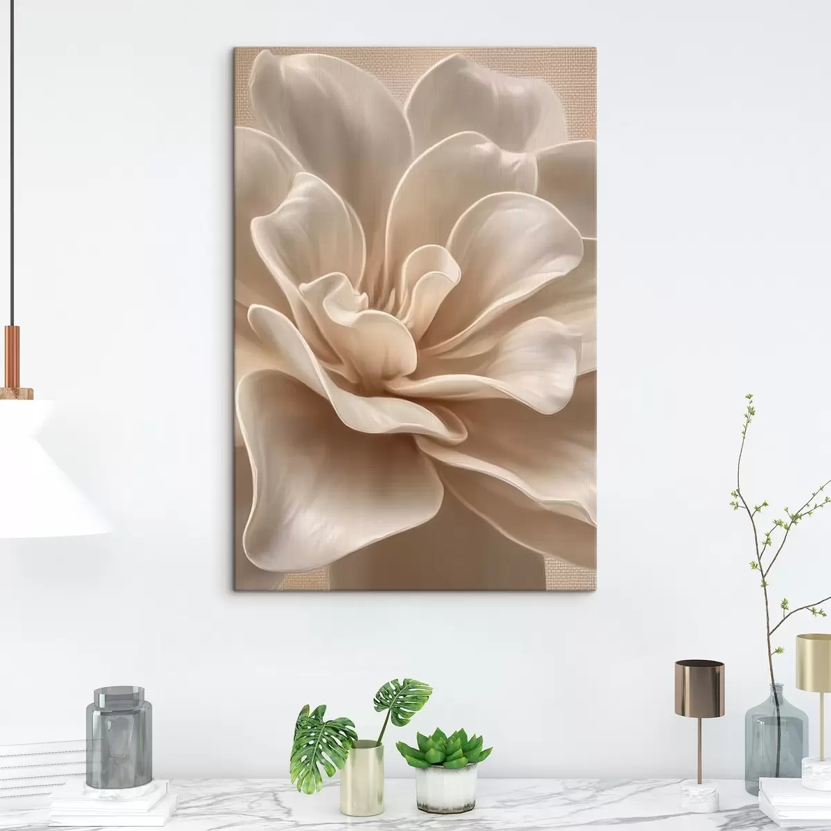 Schilderij Grote crèmekleurige bloem, zachte bloemblaadjes macro Art. s45874