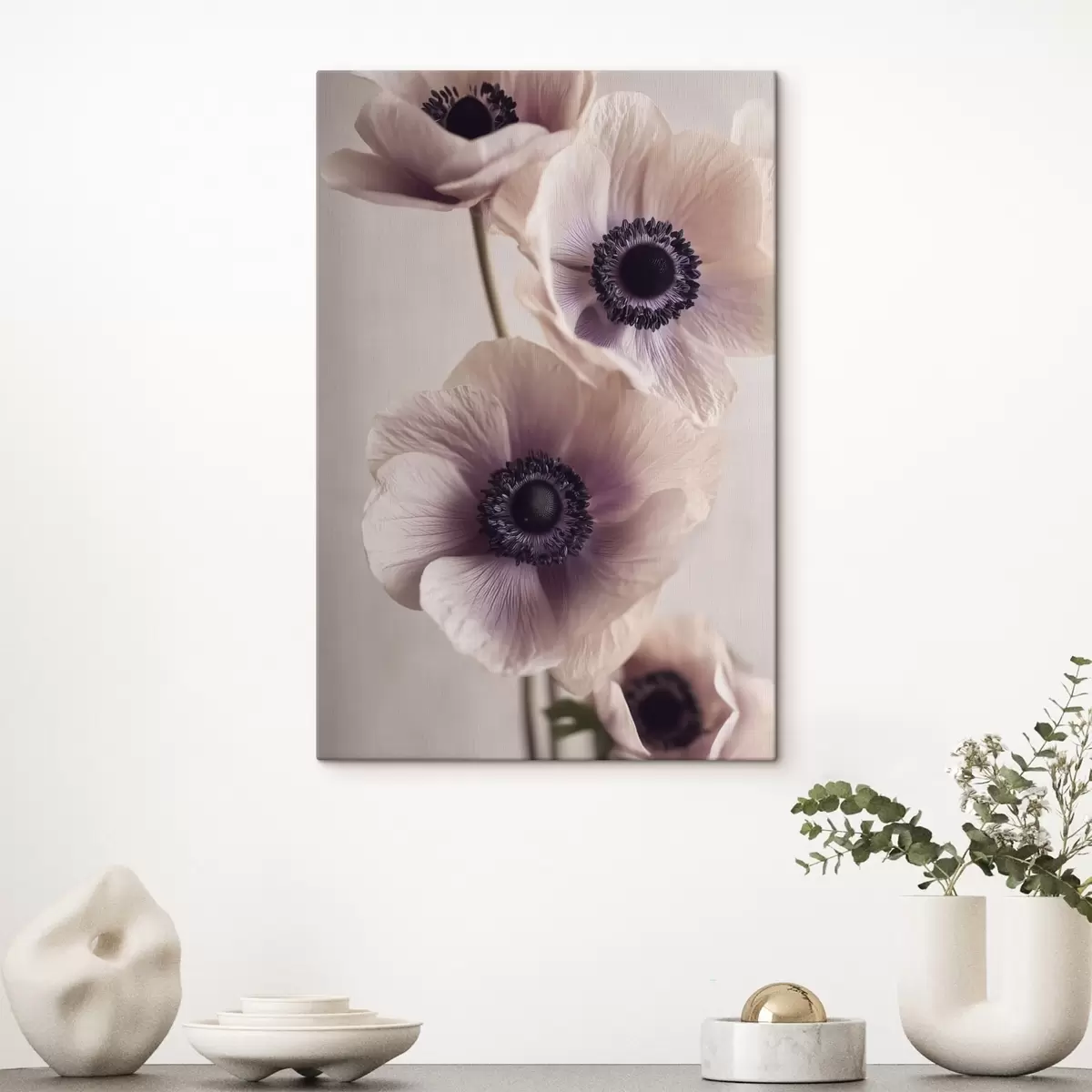 Schilderij Delicate anemonen met donkere hartjes, pastelkleurig Art. s45875