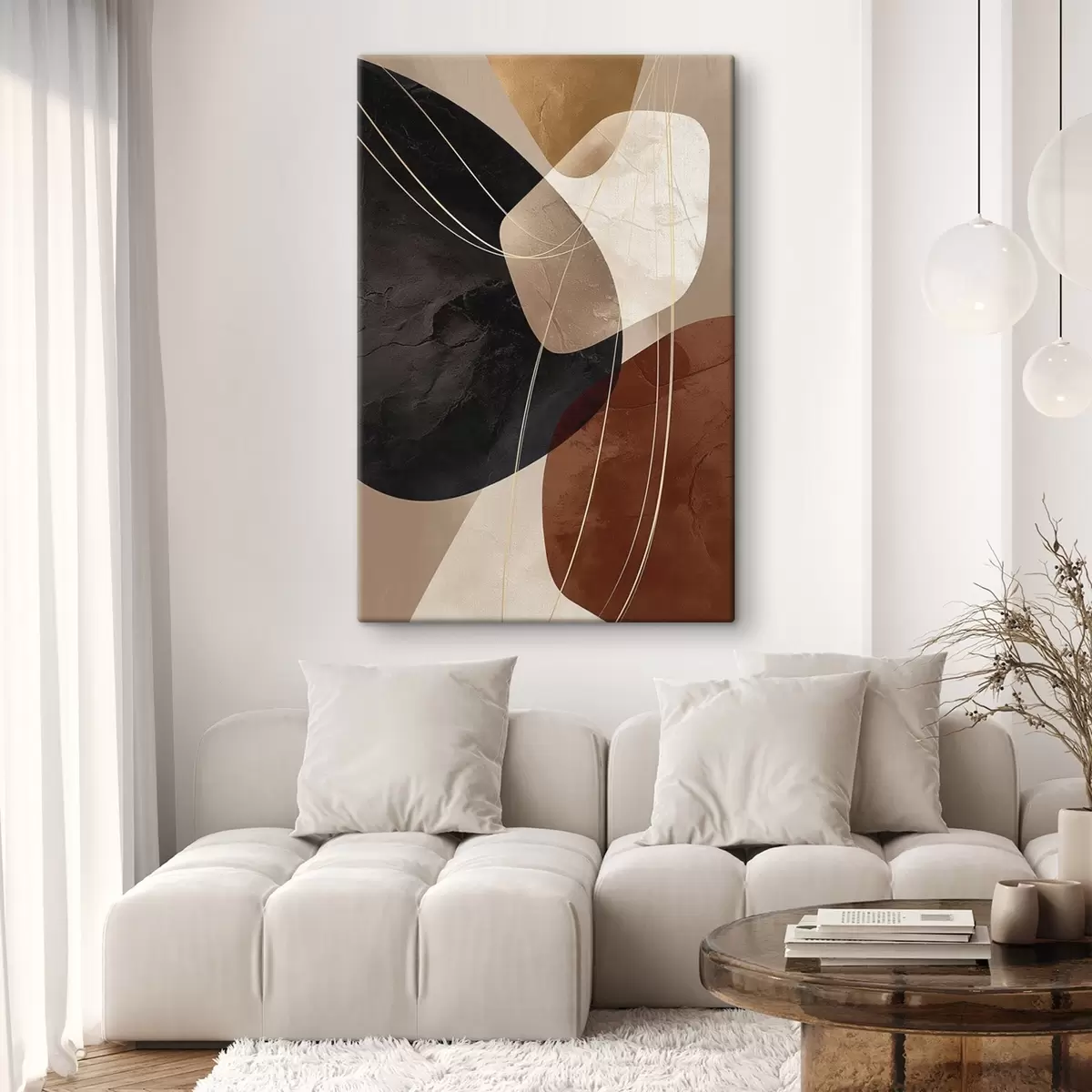 Schilderij Geometrische vormen in een warm kleurenpalet, fijne lijnen Art. s45879