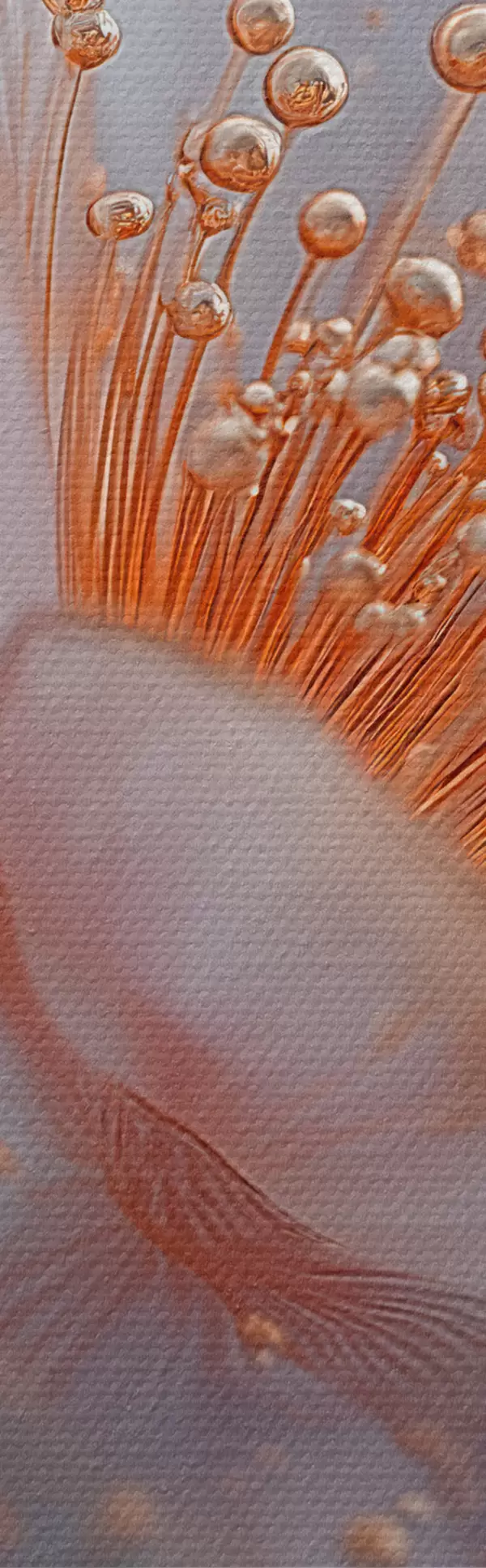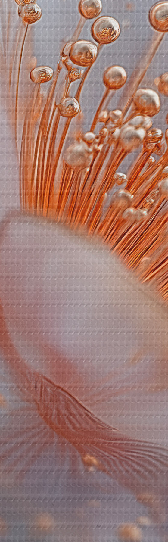 Schilderij Doorschijnende bloem met koperen meeldraden op blauw Art. s45880