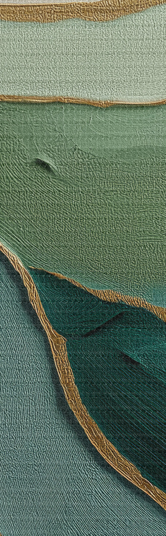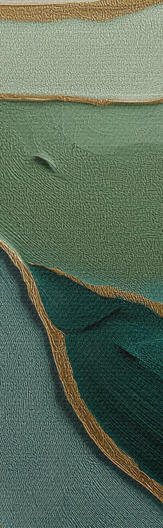 Schilderij Gelaagde groene abstractie met gele lijnen en diepte Art. s45902