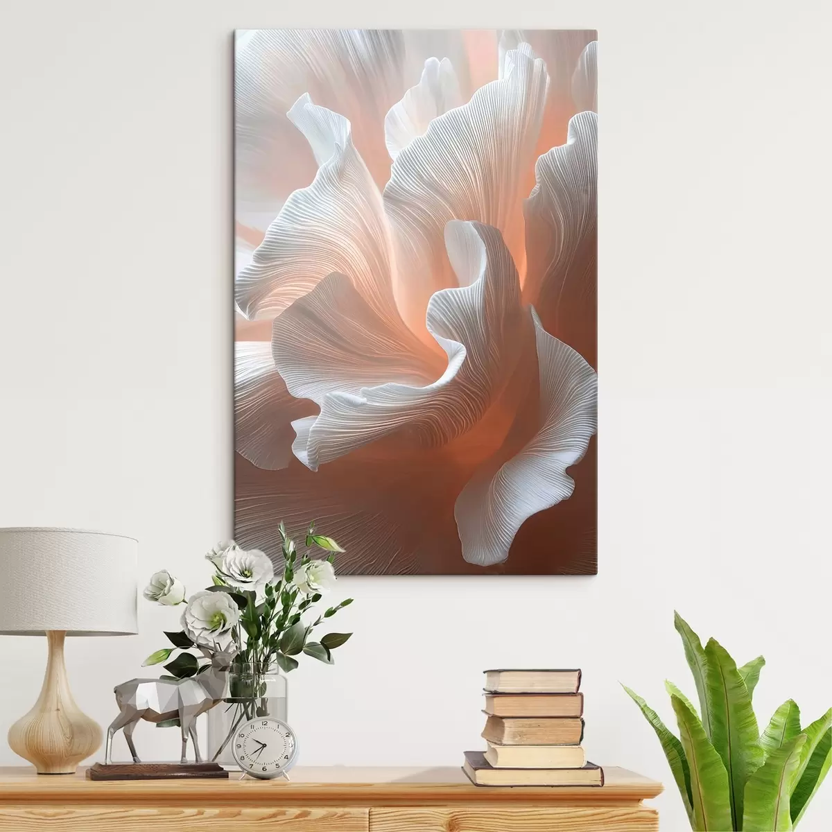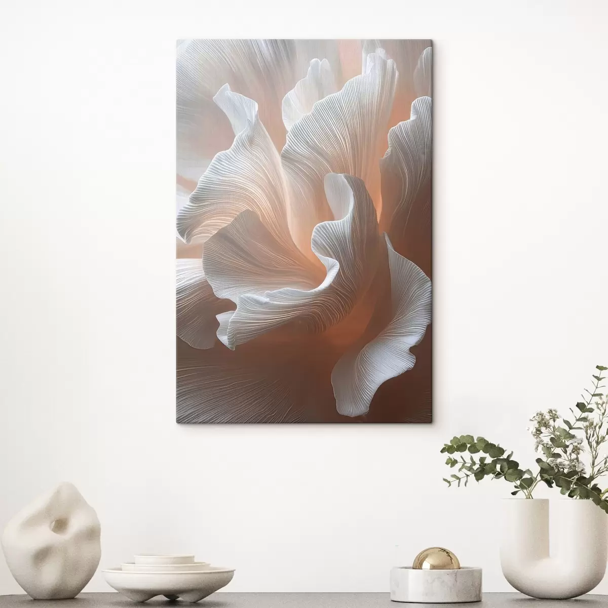 Schilderij Luchtige witte bloemblaadjes met een warme perzikkleurige gloed Art. s45909