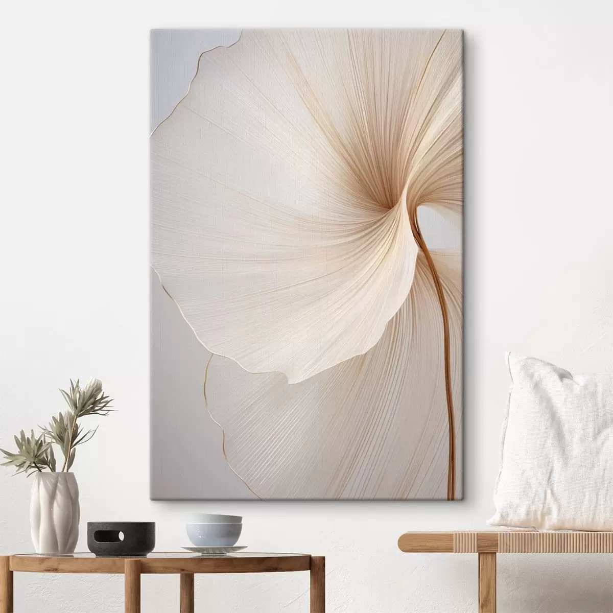 Schilderij Abstracte bloemen met dunne, delicate bloemblaadjes in witte en beige tinten Art. s45922