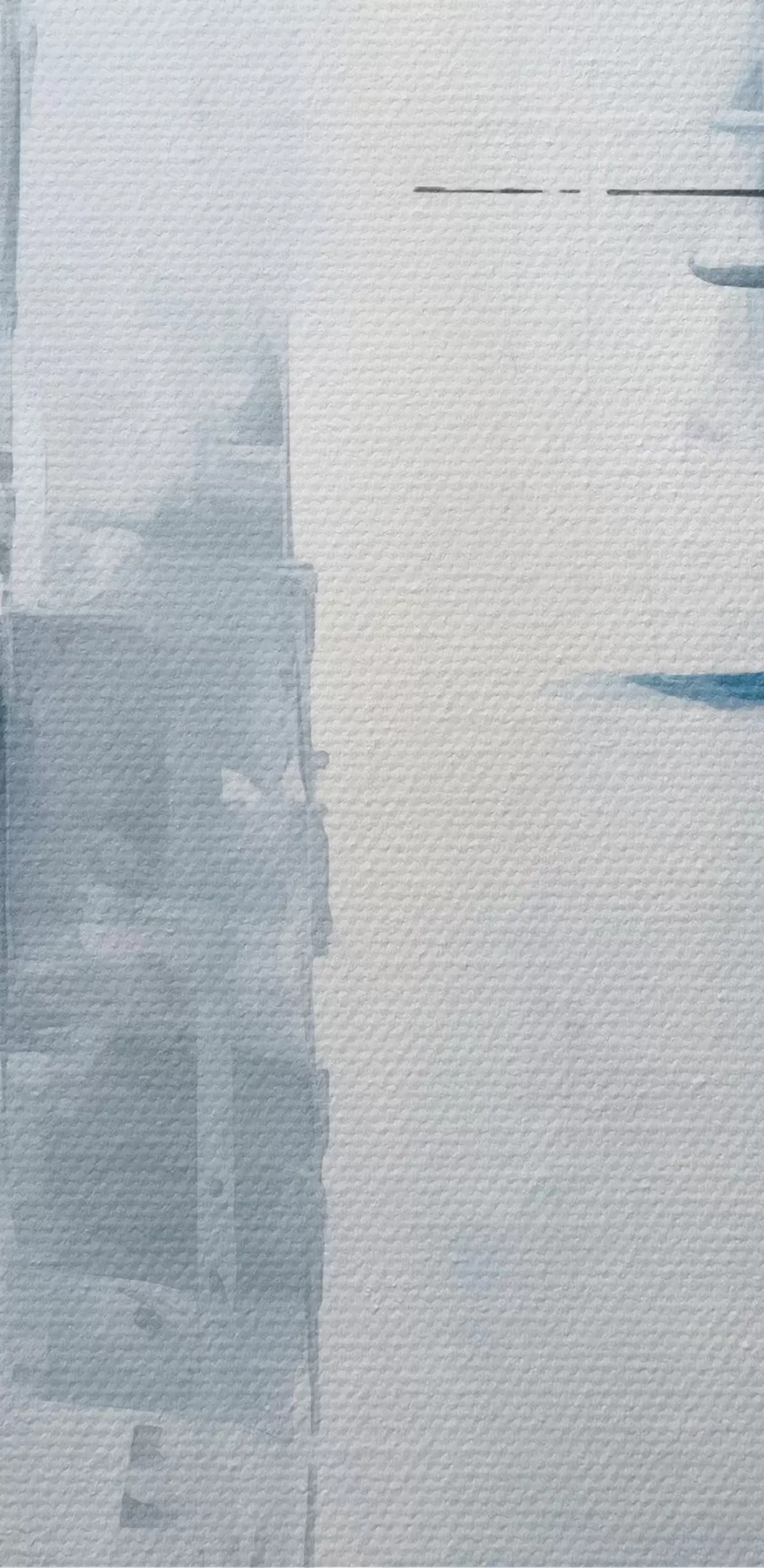 Schilderij Abstracte schilderijimitatie met blauwe, grijze en witte kleuren, verticale lijnen en geometrische vormen Art. s45926