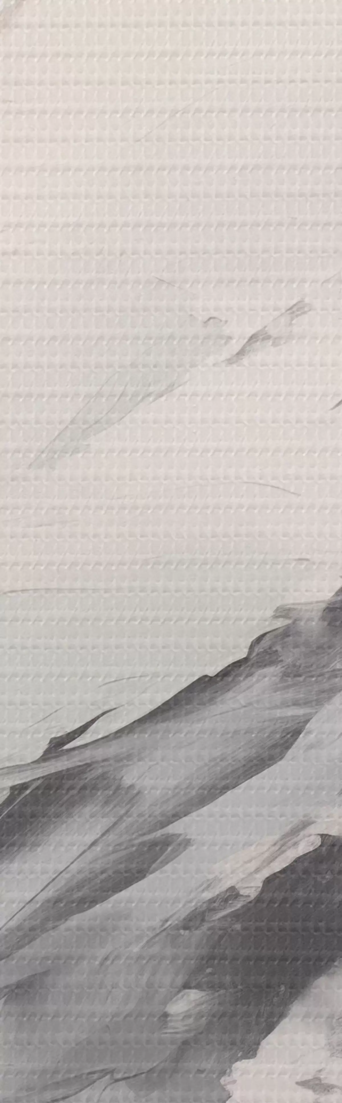 Schilderijen Besneeuwde bergtoppen met grijze schaduwen, grijze lucht, penseelstreken, gestructureerd, minimalistisch s45932