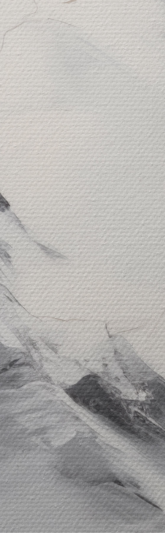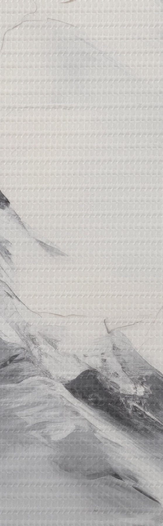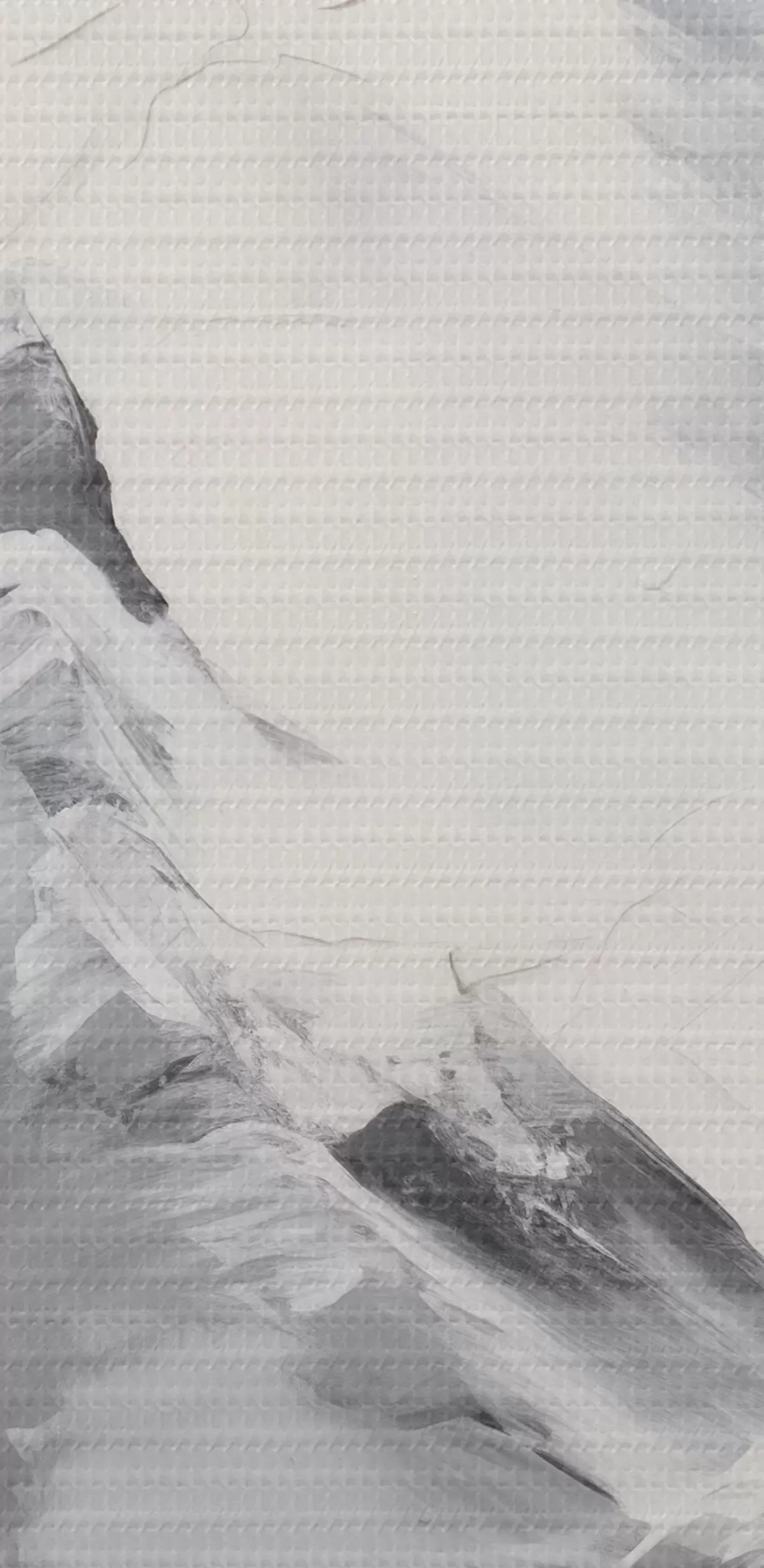 Schilderijen Besneeuwde bergtoppen met grijze schaduwen, grijze lucht, penseelstreken, gestructureerd, minimalistisch s45933
