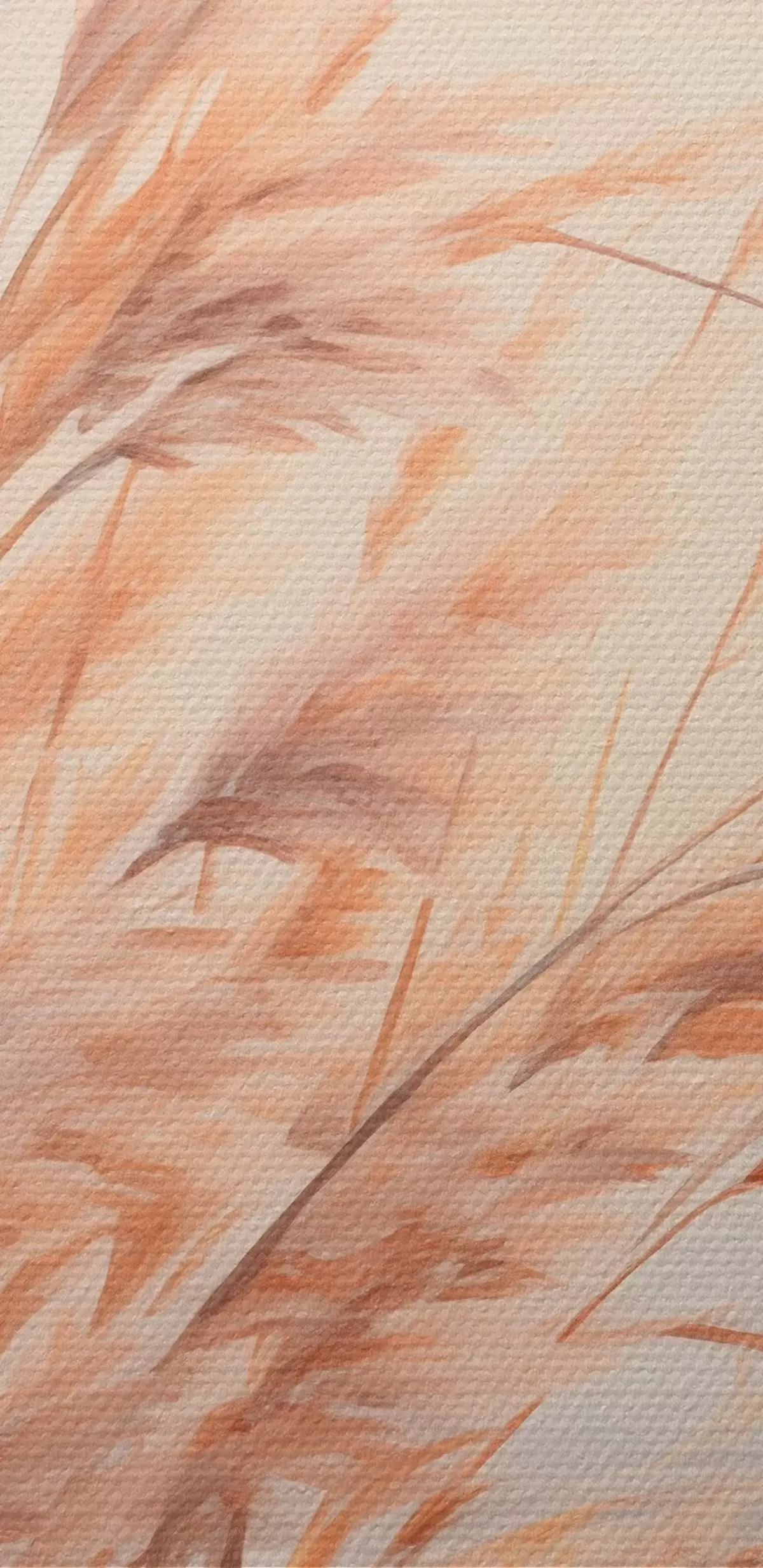 Schilderij Pampagras met pasteloranje kleurenpalet, lichtroze lucht, een rustig landschap Art. s45934