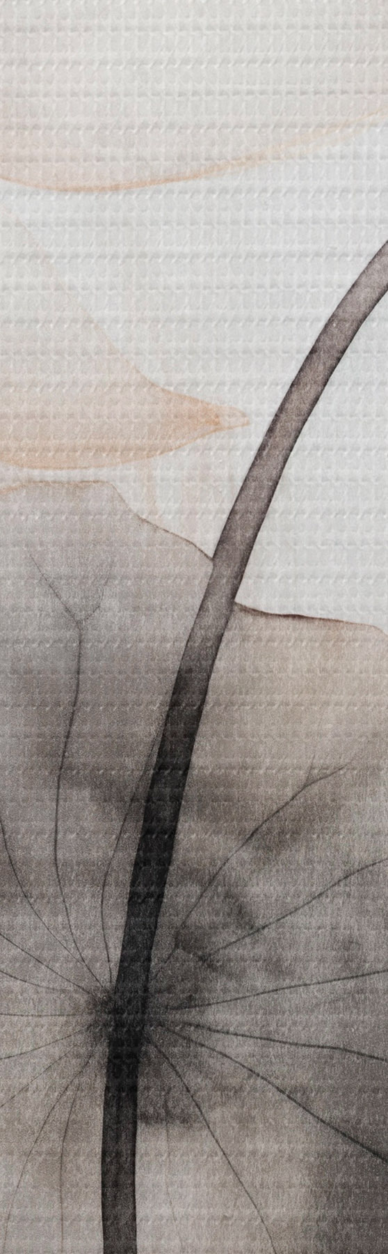 Schilderij Witte lotusbloemen met textuur en donkere bladeren, lichte achtergrond, minimalistisch ontwerp Art. s45937