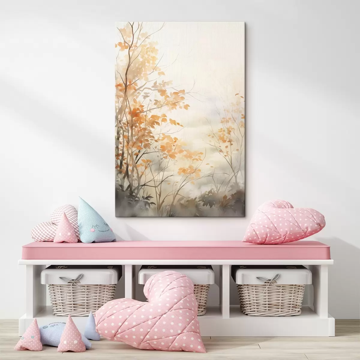 Schilderij Herfstbomen met oranje bladeren en takken, zachte aquarelstijl, delicate penseelstreken Art. s45941