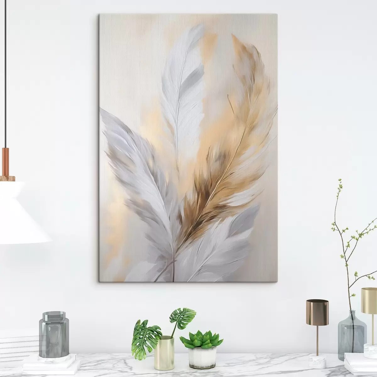 Schilderij Veren met oranje accenten, minimalistische compositie met textuur, moderne kunst Art. s45945