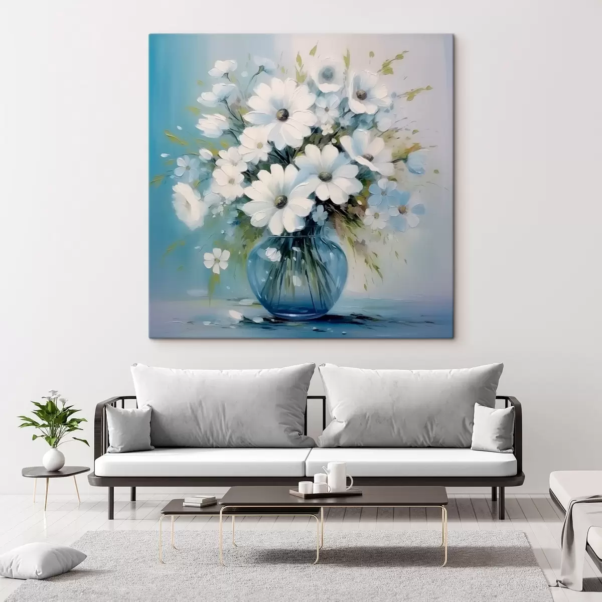 Schilderij Boeket madeliefjes in een blauwe vaas Art. s45959