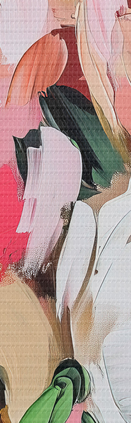 Er zijn drie soorten materiaal te bestellen: Economic Canvas - een dicht en duurzaam materiaal voor digitaal printen, identiek aan schildersdoek, waterdicht oppervlak, realistische weergave van details, materiaal met gemiddelde korrel. Premium Canvas - de textuur lijkt op die van schildersdoek (verweven kleine draden). Zachte, gedetailleerde reproductie van de afbeelding op een mat oppervlak. Eco-Premium - hoogwaardige 100% katoenen stof. Dankzij de natuurlijke katoenvezels is het materiaal duurzaam en slijtvast. Uitstekende kleurweergave en detail.