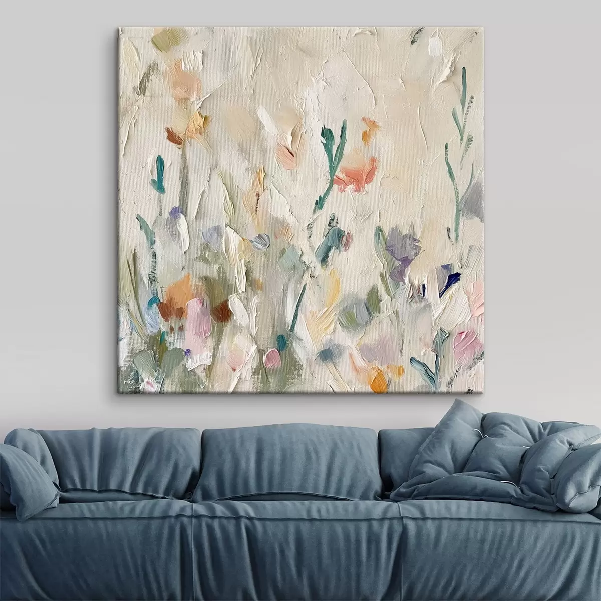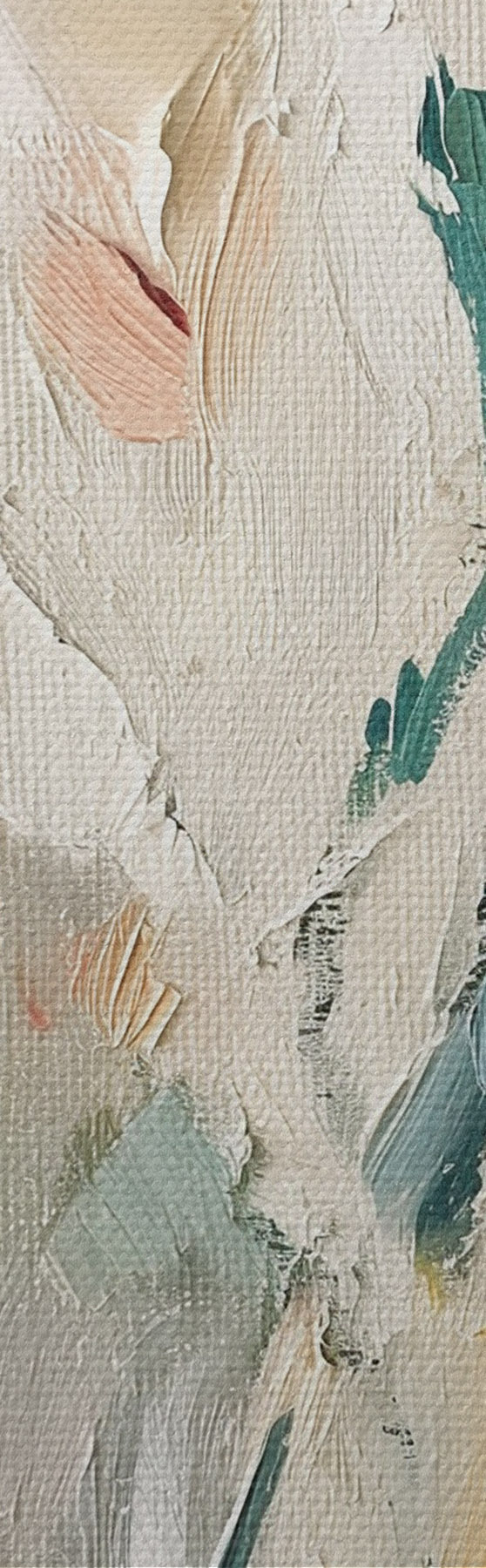Het schilderij kan direct na ontvangst worden opgehangen. Het schilderij wordt opgespannen op een 2 cm breed houten spieraam.