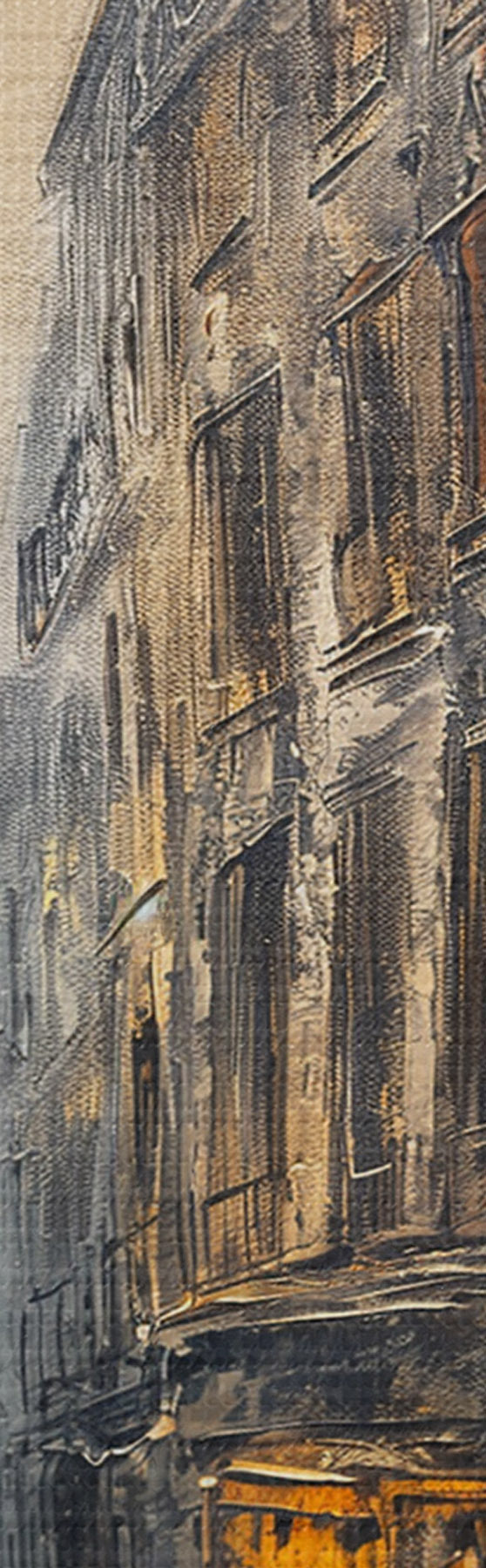 Het schilderij kan voorzichtig worden schoongeveegd met een droge zachte doek of spons; het wordt niet aanbevolen om natte producten te gebruiken. Het gebruik van een vochtige spons is alleen toegestaan als het schilderij gevernist is.