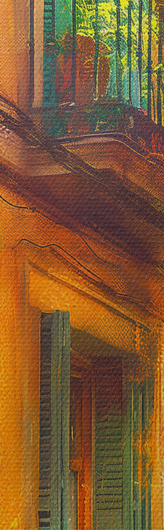 Het schilderij kan direct na ontvangst worden opgehangen. Het schilderij wordt opgespannen op een 2 cm breed houten spieraam.