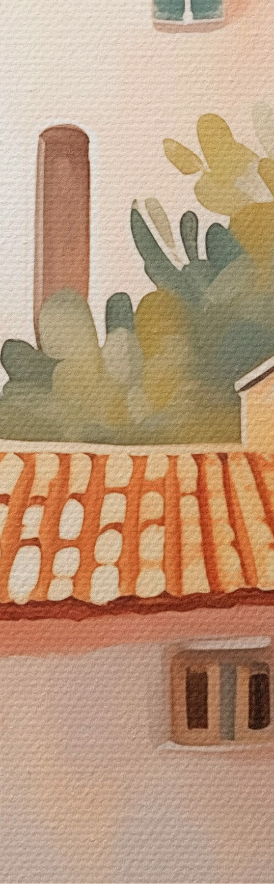 Het schilderij kan voorzichtig worden schoongeveegd met een droge zachte doek of spons; het wordt niet aanbevolen om natte producten te gebruiken. Het gebruik van een vochtige spons is alleen toegestaan als het schilderij gevernist is.