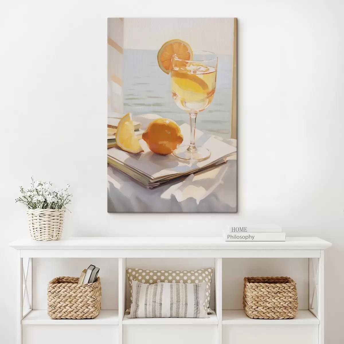 Schilderij Een cocktail in een glas bij het raam Art. s46064
