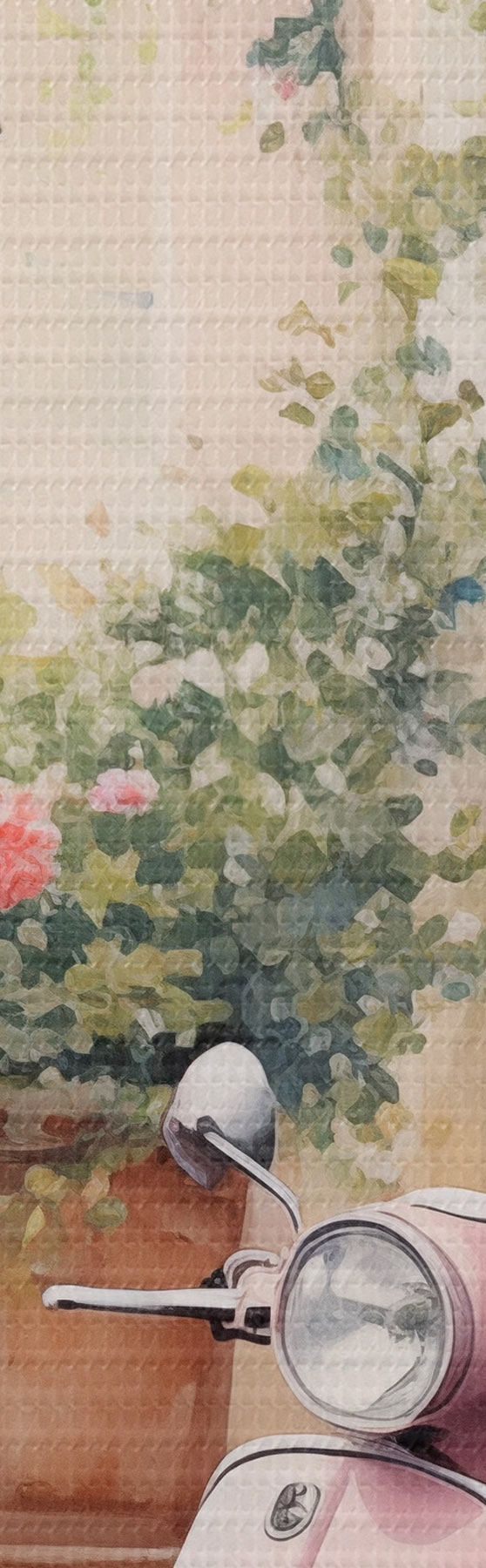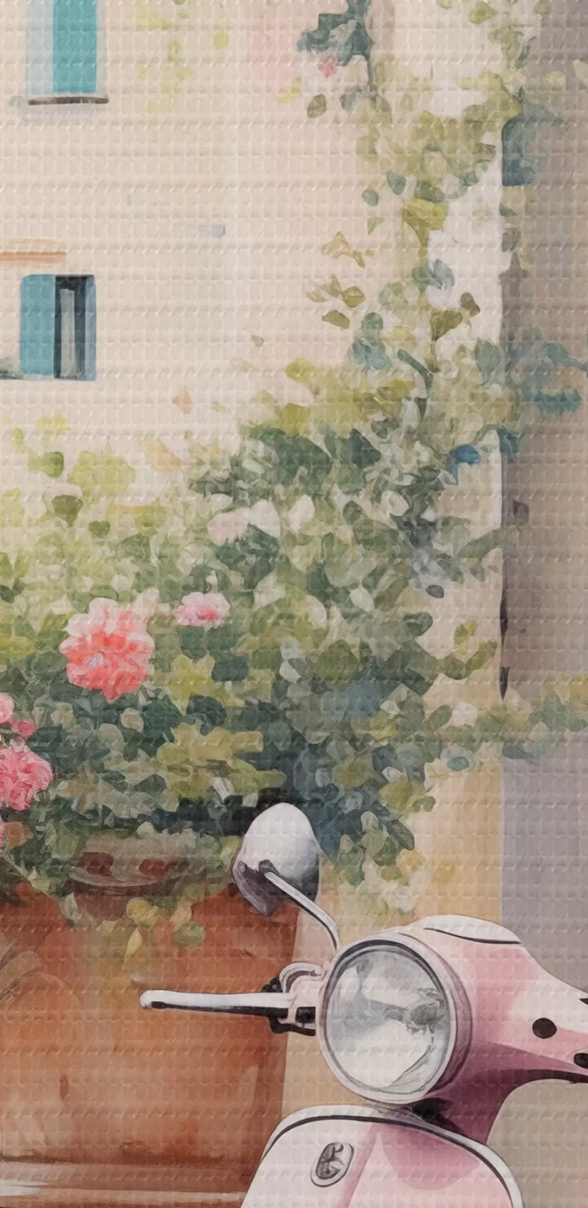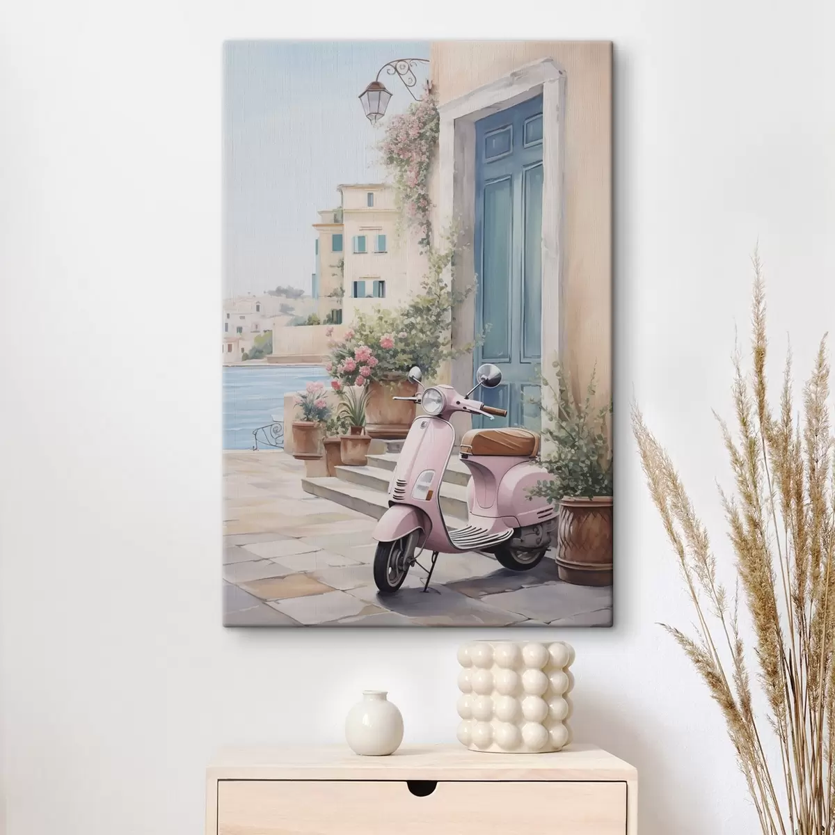 Schilderij Een scooter tegen de achtergrond van een huis Art. s46065