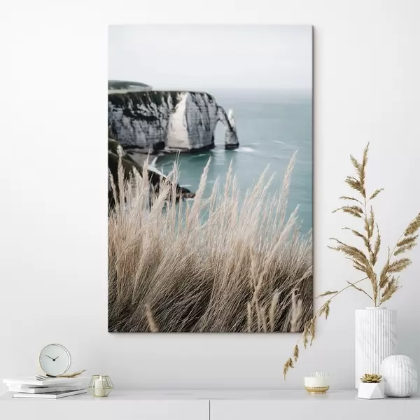 Schilderij Zee en rotsboog, uitzicht door droog gras Art. s46142