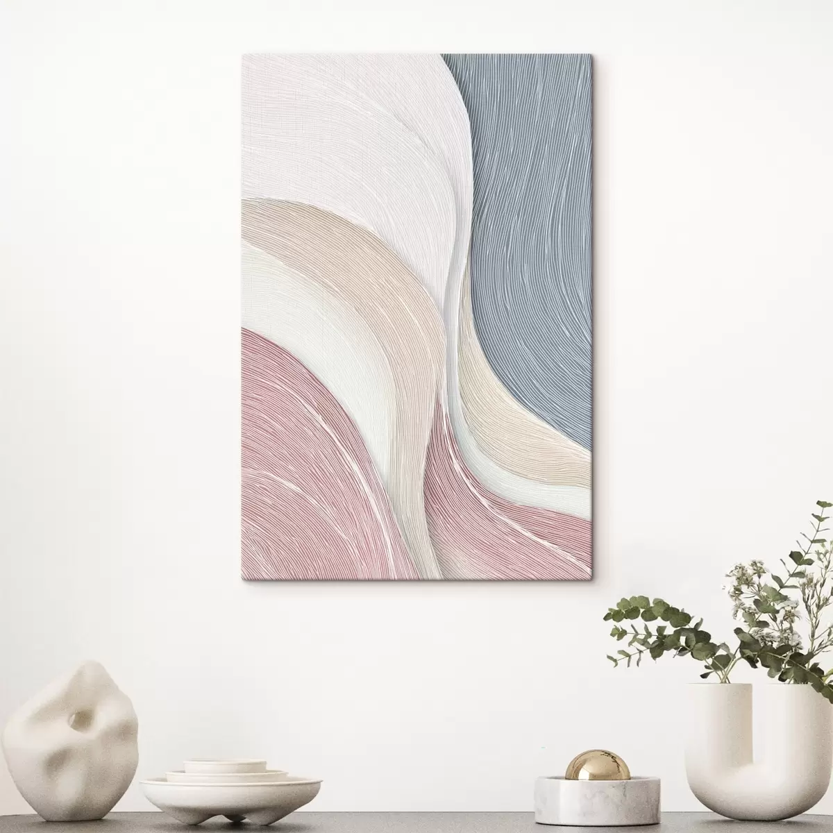 Schilderij Lichte abstracte golven in lichtroze en grijs-witte tinten Art. s46153